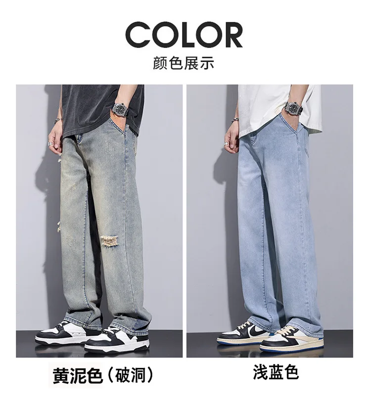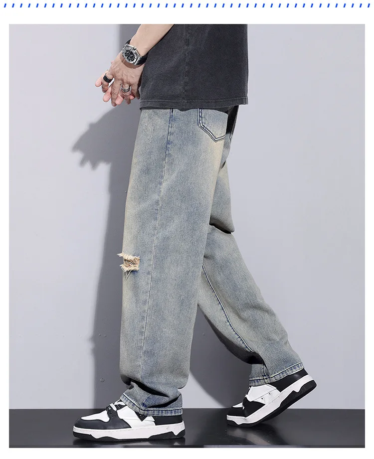 saferido Men's Clothing Y2k Baggy Jeans Spring/Summer New Man Pants American Trendy Hole Loose Leisure Straight Leg Wide Jeans for Men