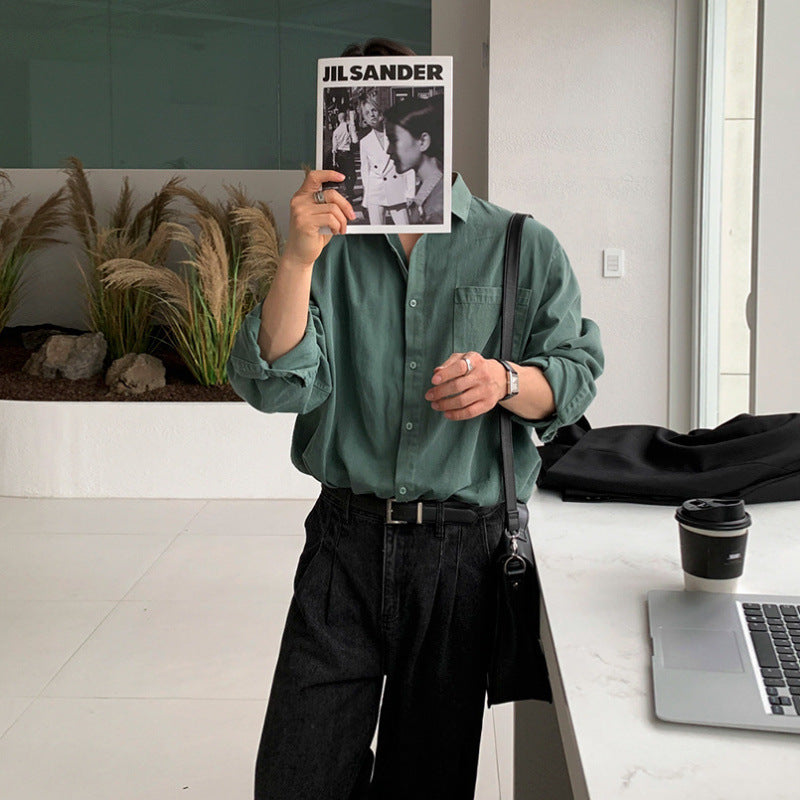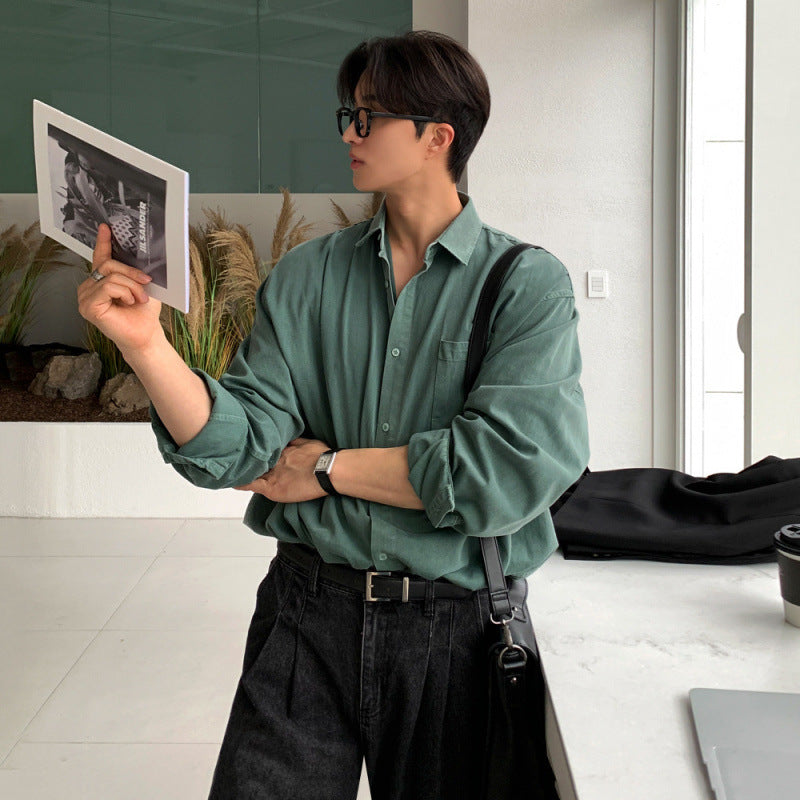 saferido mens fall fashion Washed Distressed Long-Sleeved Shirt Men's Autumn Loose Casual Shirt Korean Style Trendy Retro Lapel Coat
