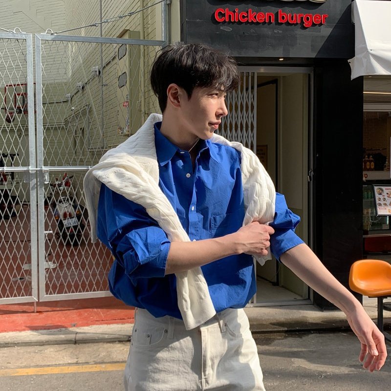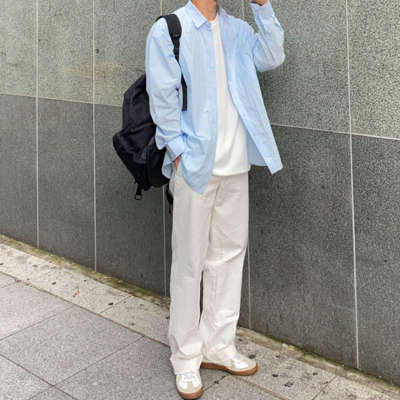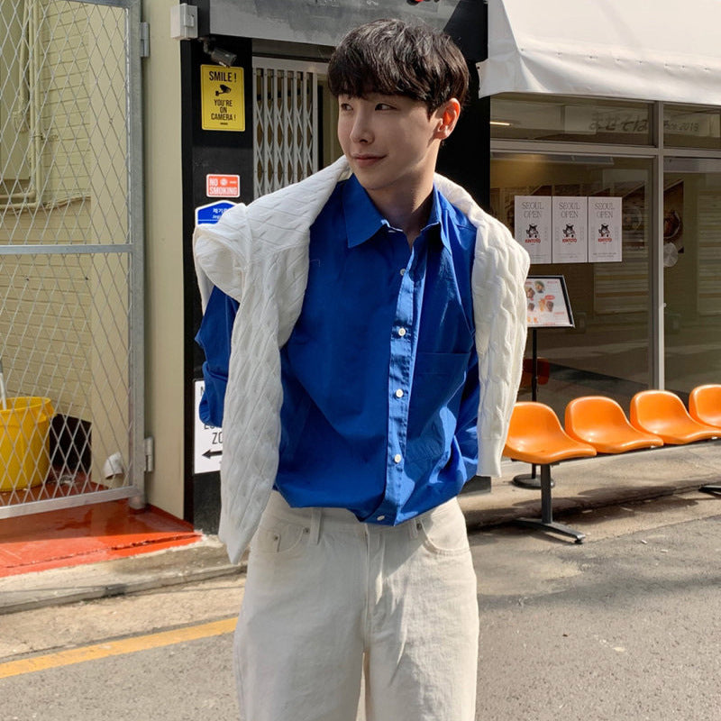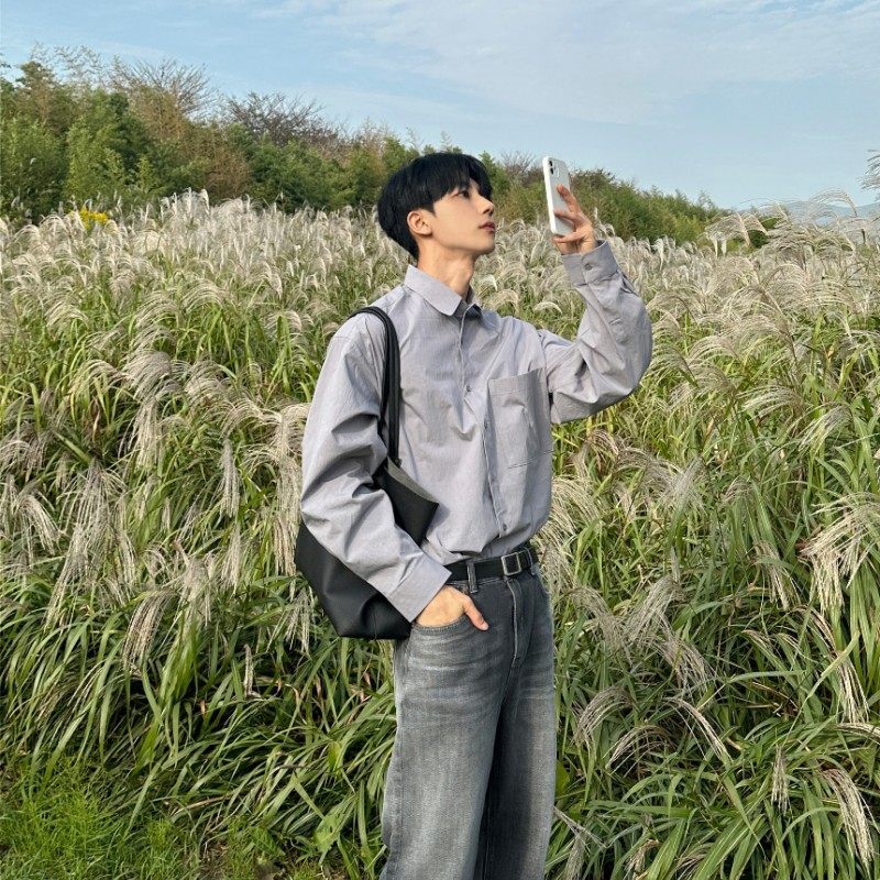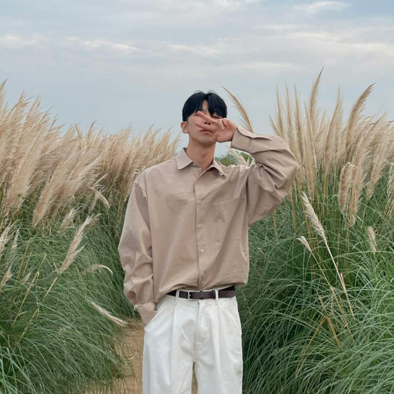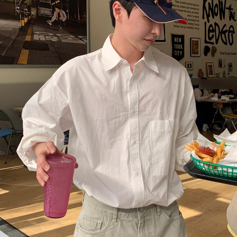 saferido mens fashion White Shirt Men's Spring High-Grade Ruffle Handsome Long-Sleeved Shirt American Draping Casual Workwear Jacket