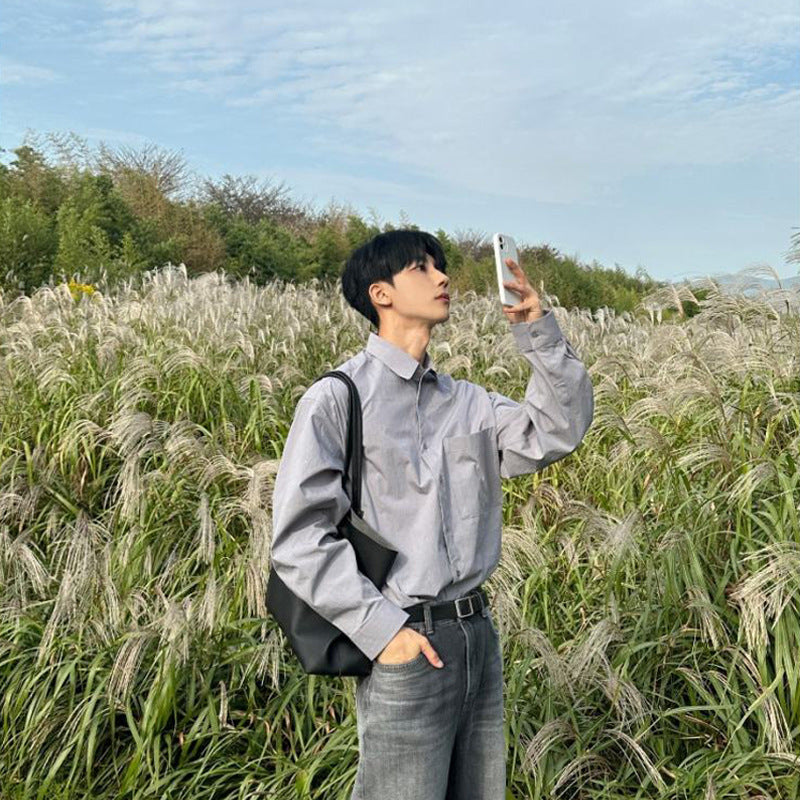 mens fashion White Shirt Men's Spring High-Grade Ruffle Handsome Long-Sleeved Shirt American Draping Casual Workwear Jacket