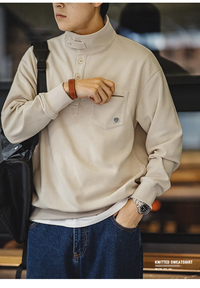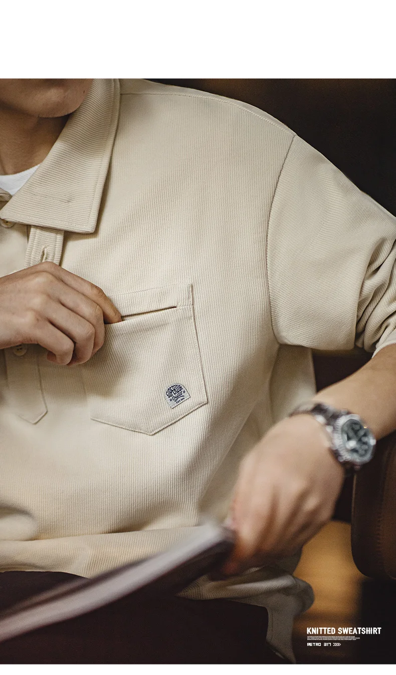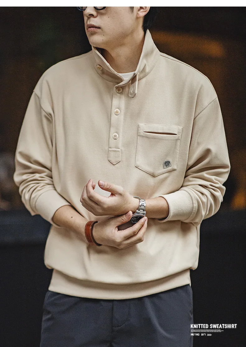 saferido Men's Half-Placket Sweatshirt American Retro Casual Polo Collar Shirt Cozy Style Lapel Pullover for Men Spring and Autumn