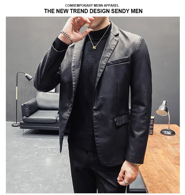 saferido Mens Jacket Men's Jackets Male Spring and Autumn Leather Jackets Men's New Korean Style Slim Thin Trend Leather Jackets 5XL