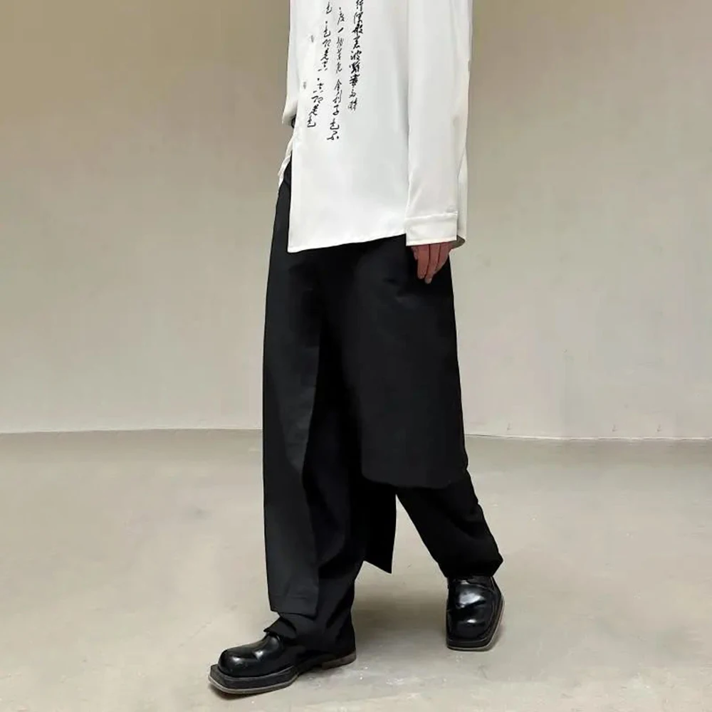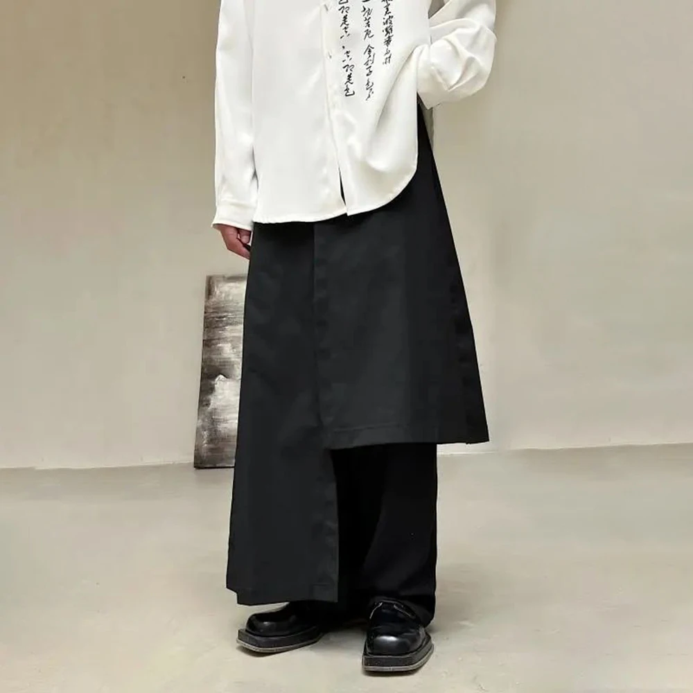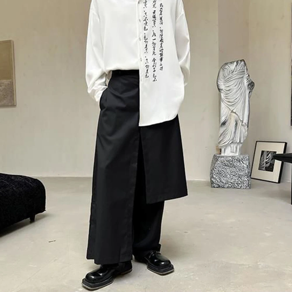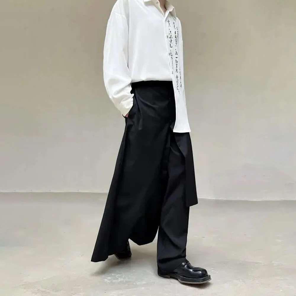 saferido Mens Japanese Double-Layer Irregular Splicing Culottes New Necessities Couple Lazy Style Retro Loose Wide-Leg Pants Unisex