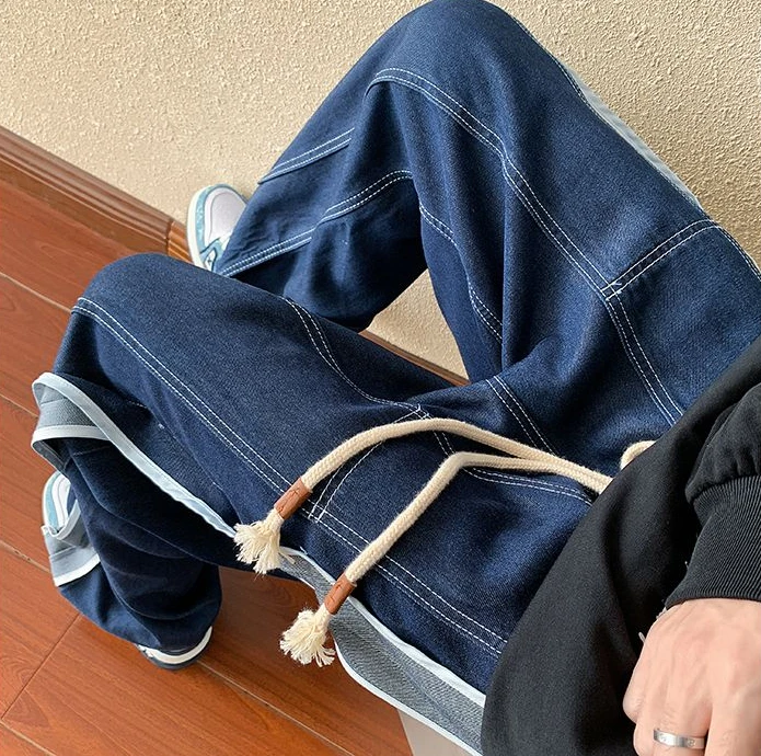 saferido Men's Jeans Aesthetic Trousers with Pockets Straight Man Cowboy Pants Wide Leg Free Shipping Korean Fashion Y2k Vintage Designer