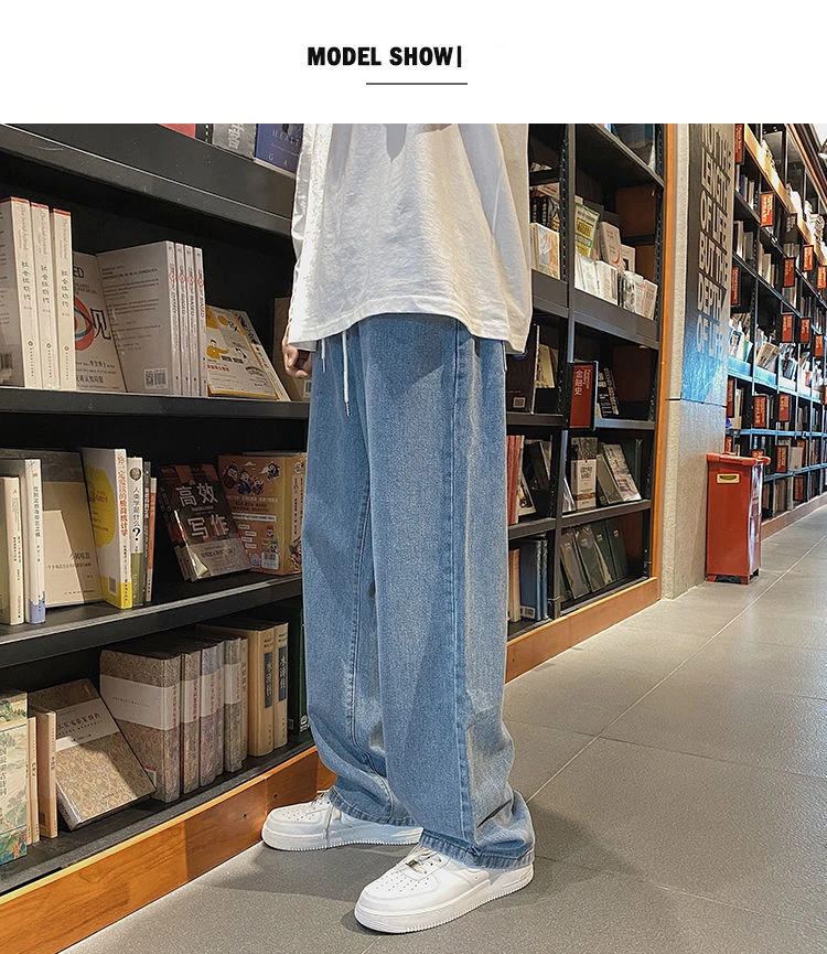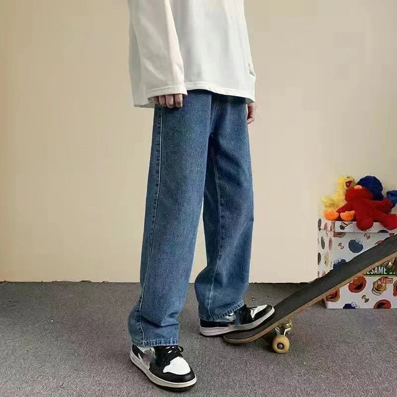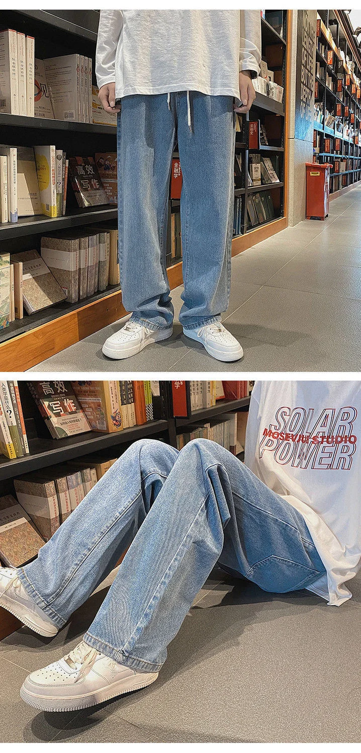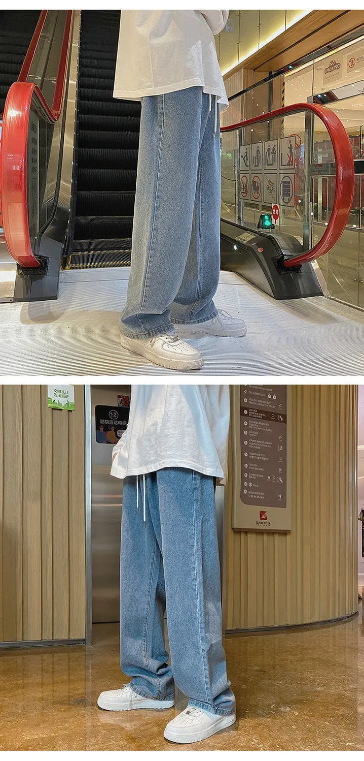 saferido Men's Jeans Straight Wide Leg Loose Pants Spring and Autumn Elasticated Waist Vintage Casual Trousers Bottoms Plus Size S-3XL