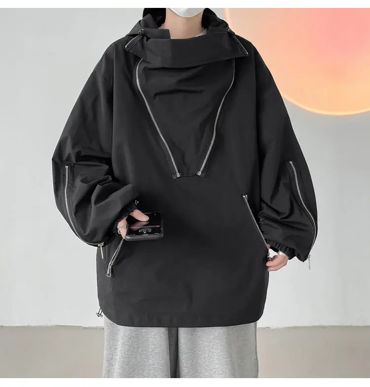 saferido Men's Korean Style Clothes for Outerwear Loose Fitting Hooded Jackets Man Hoodie Original Clothing Popular Coats