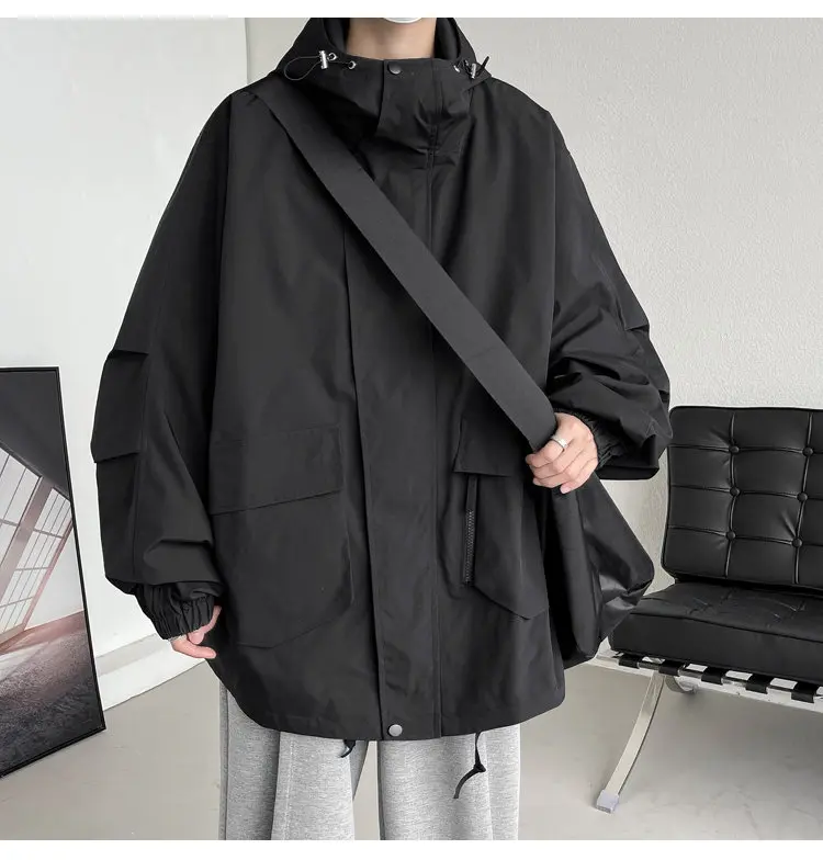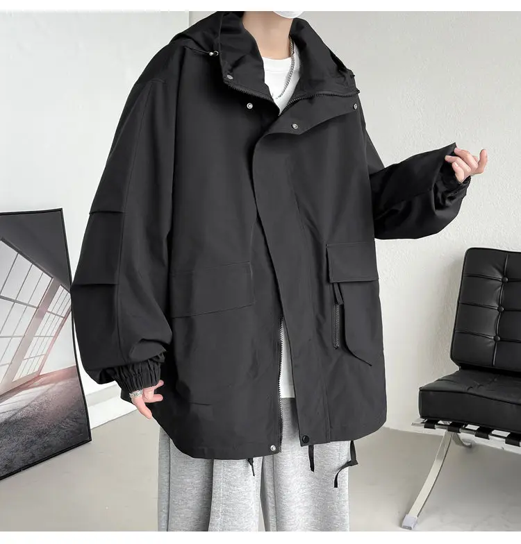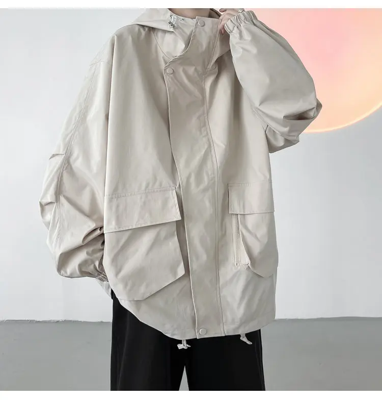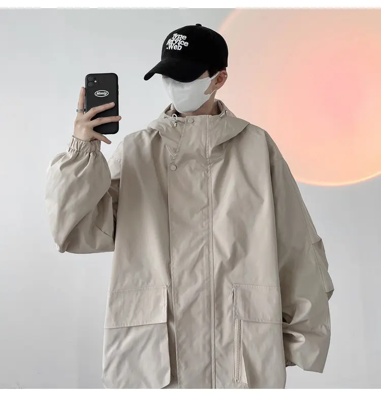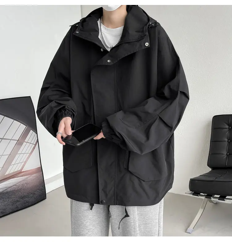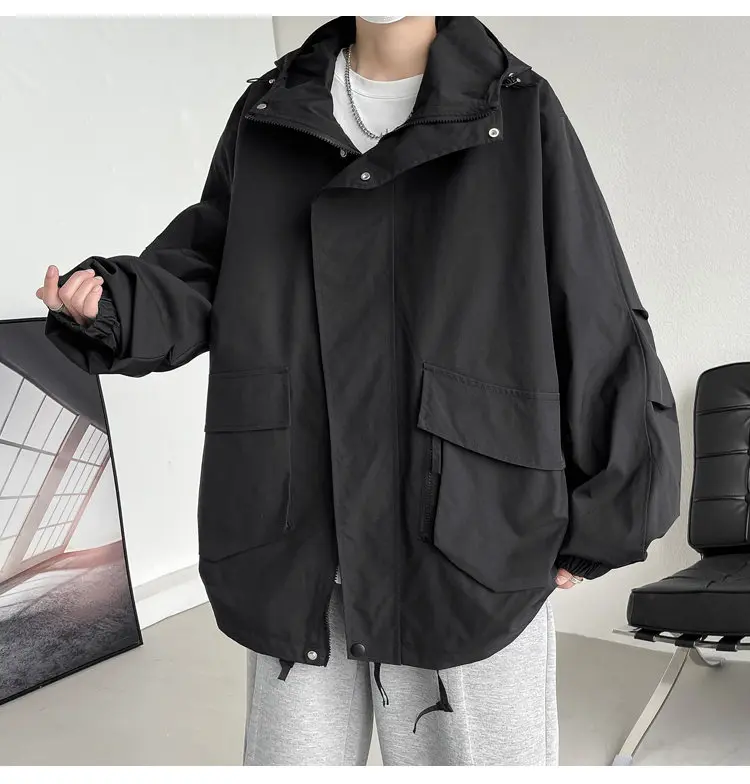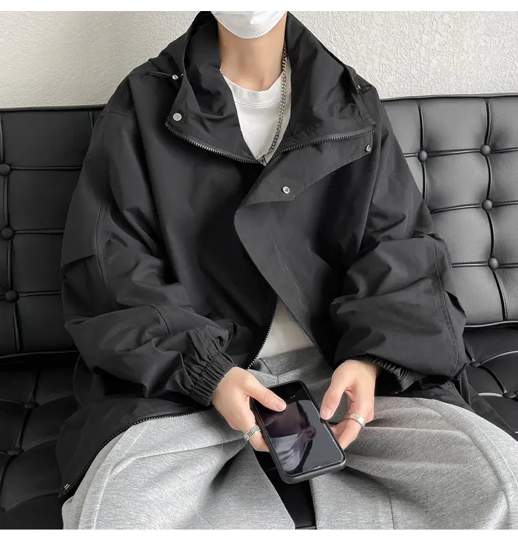 saferido Men's Korean Style Clothes Outerwear Loose Fitting Hooded Jackets Original Clothing Man Hoodie Men's Coats