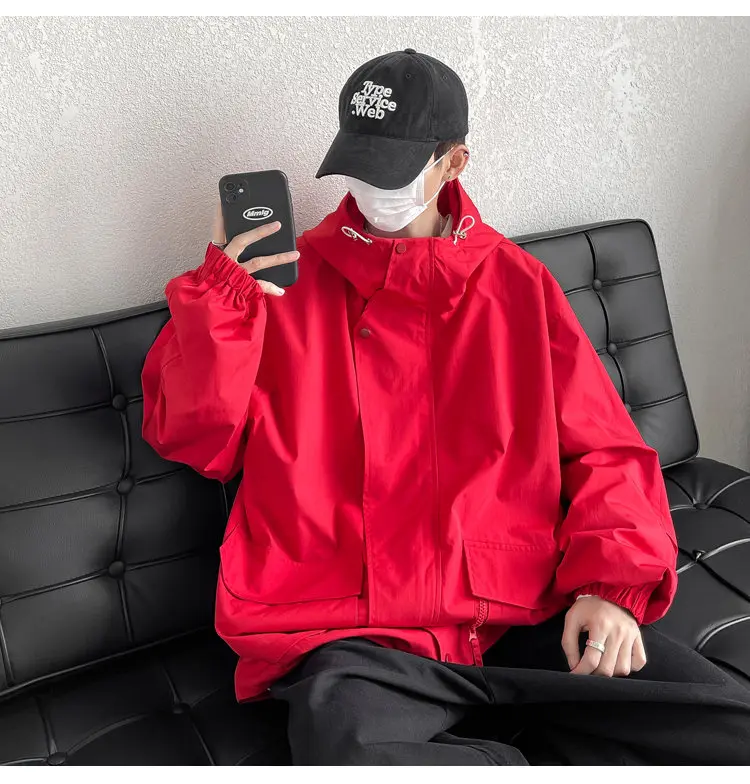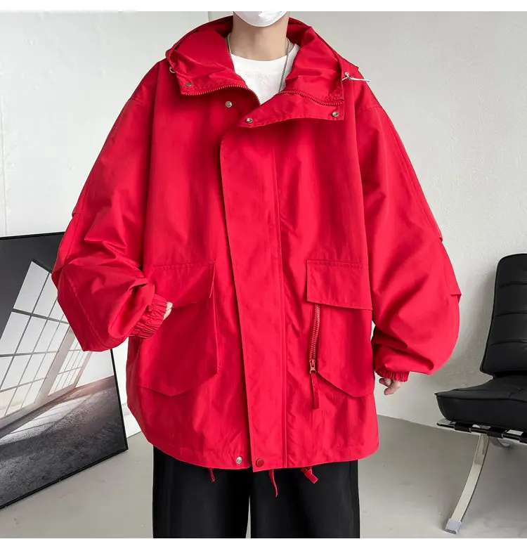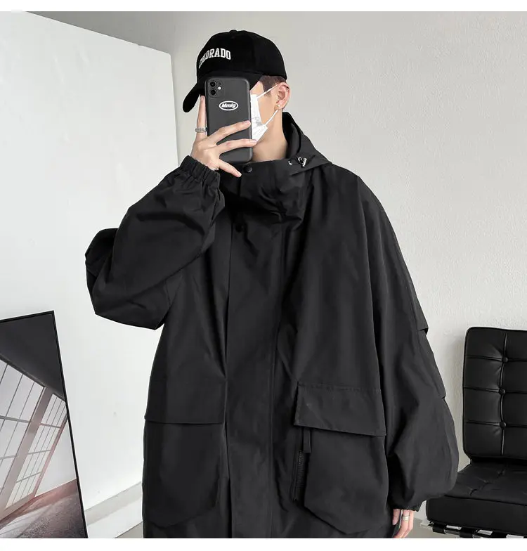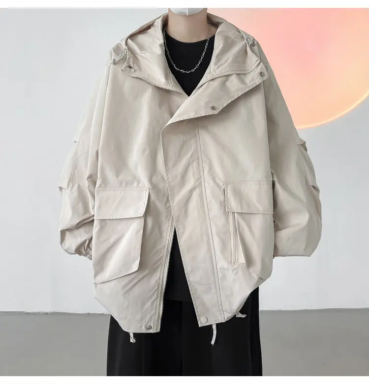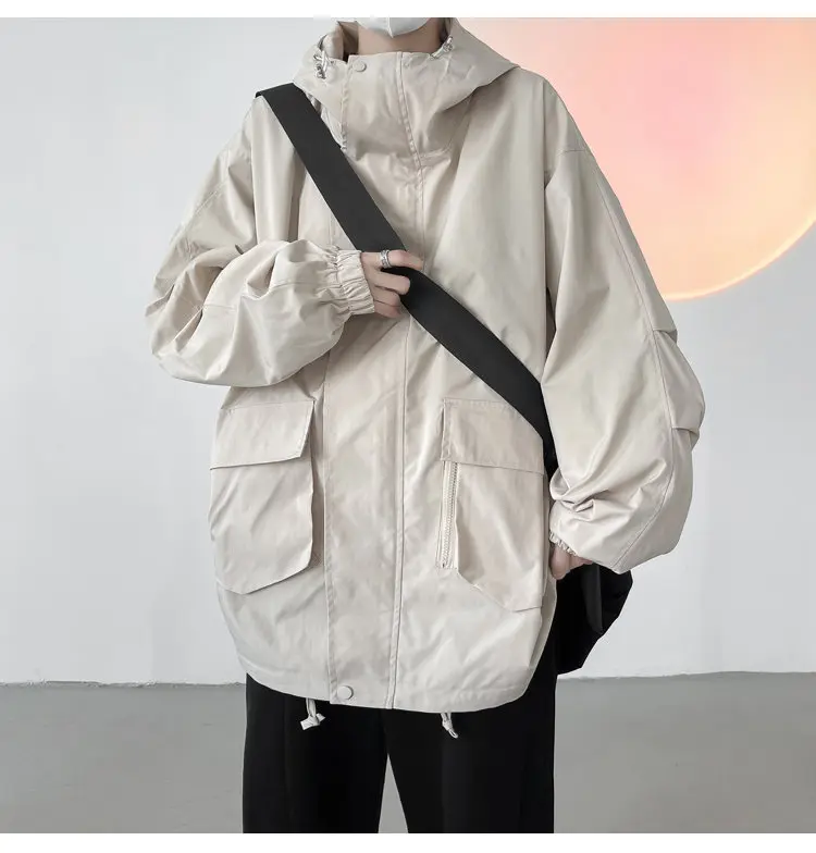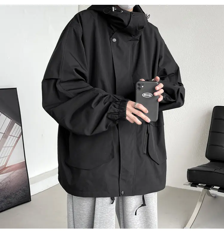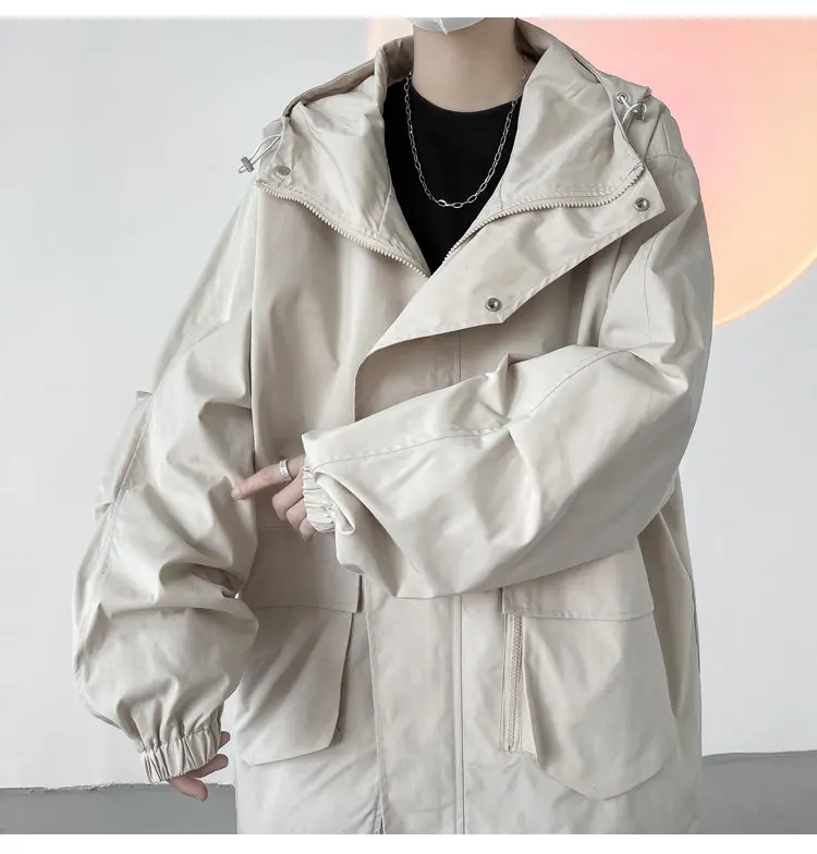 saferido Men's Korean Style Clothes Outerwear Loose Fitting Hooded Jackets Original Clothing Man Hoodie Men's Coats