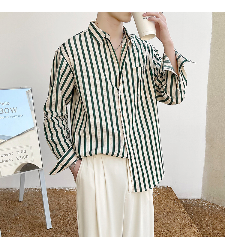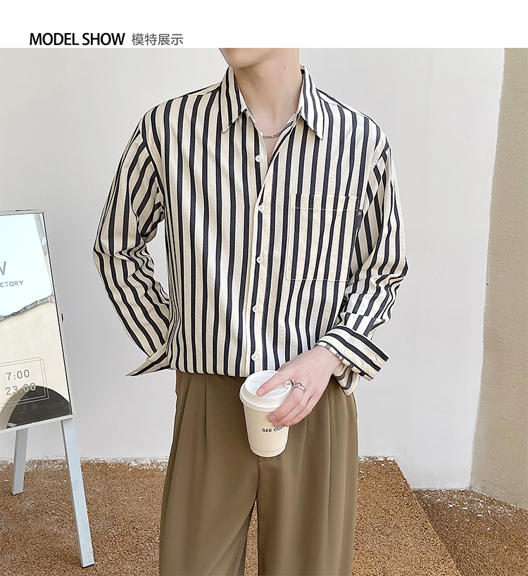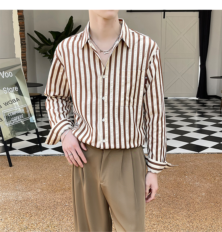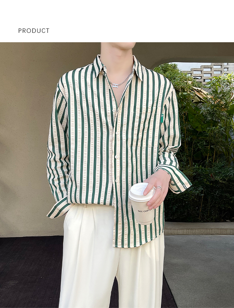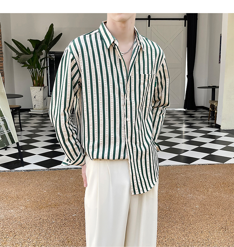 saferido Men's Korean Style Simple Loose Striped Printing Long Sleeve Shirt Fashion Trend High Quality Casual 3 Color Shirts M-2XL