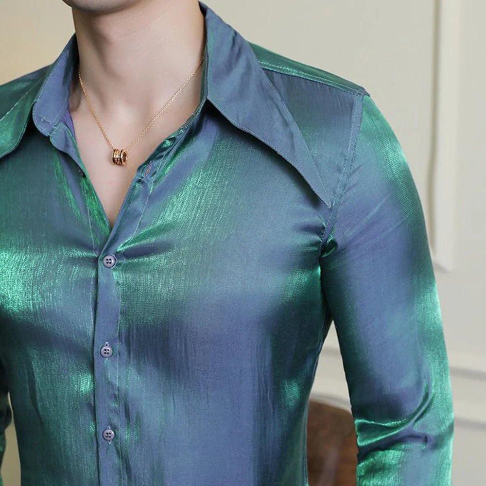 saferido Mens Korean Style Slim Sexy Polarized Pointed Collar Long-Sleeve Shirt Autumn Nightclub Trend No-Iron Anti-Wrinkle Shirt For Men