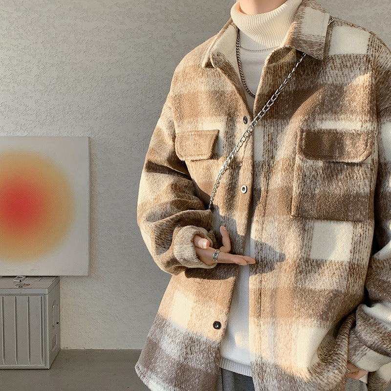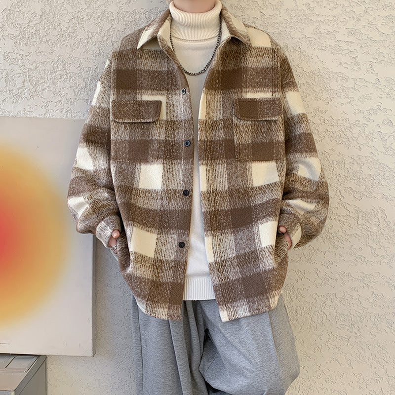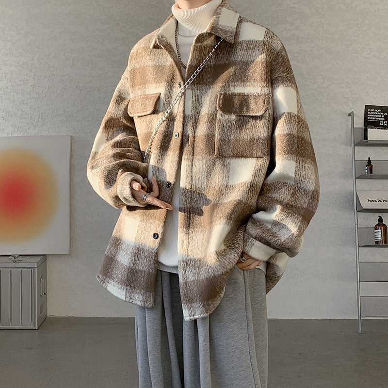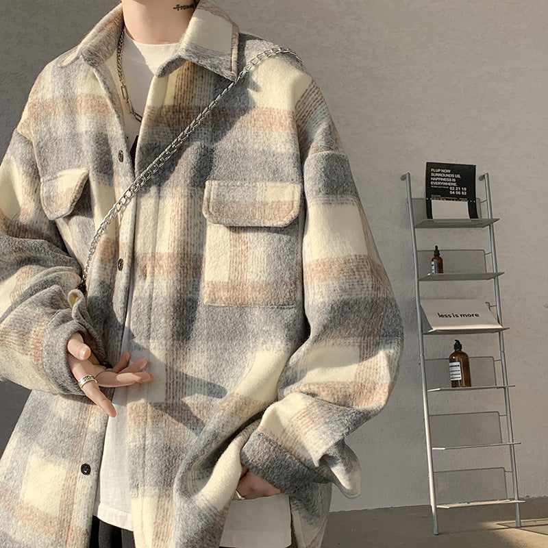 mens outfits 2024 Spring New Ct29 Loose Maillard Woolen Coat Male Student Hong Kong Style Jacket Rock Gray White