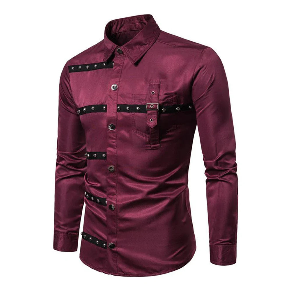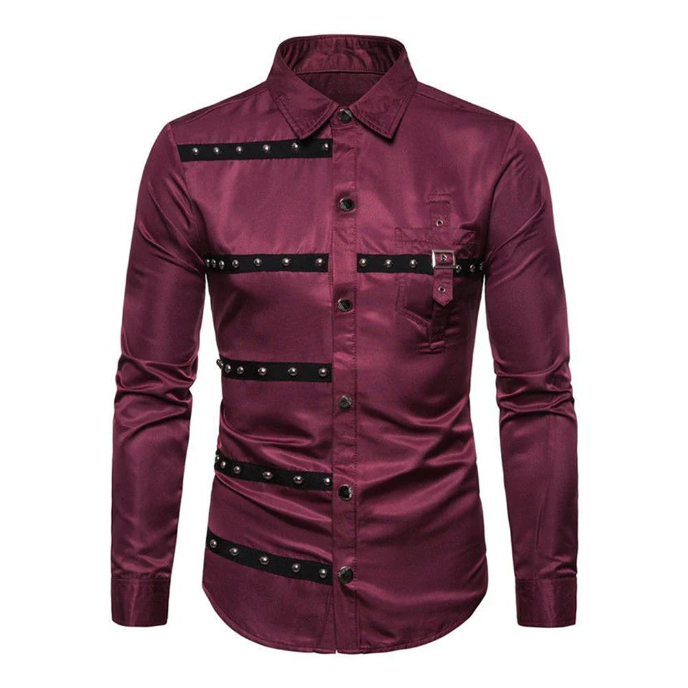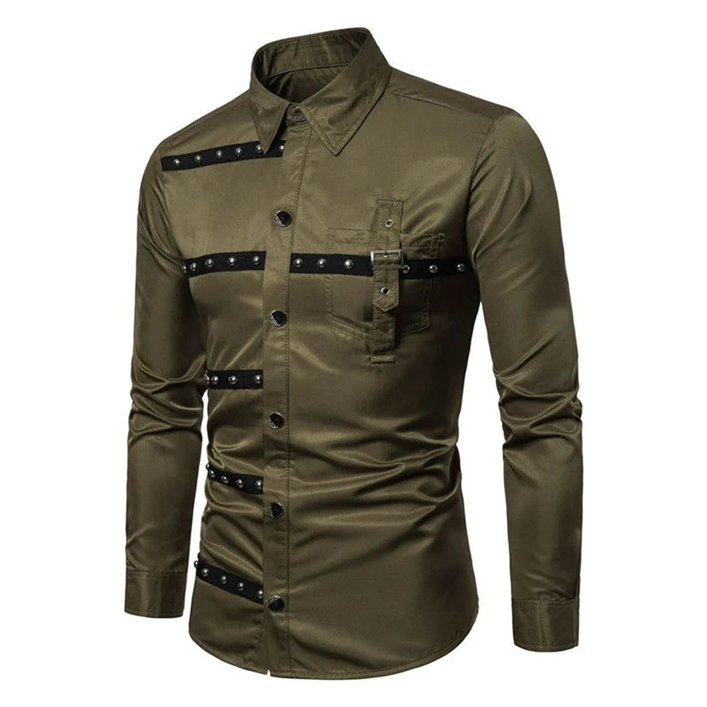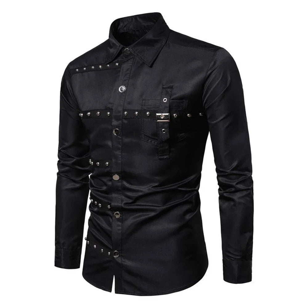 saferido Mens Punk Rivet Gothic Style Long Sleeve Shirt 2024 New Genderless Fashion Youth Individuality Retro Solid Color Shirt Unisex