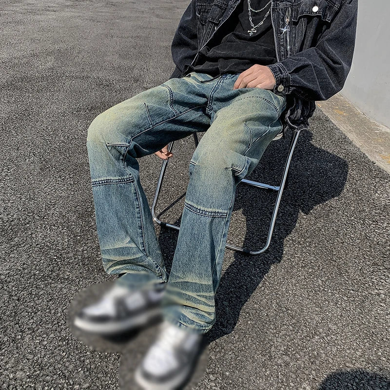 saferido Men's Retro Washed Old Jeans Fashion Street Loose Large Size Nine-minute Pants Korean Classic Simple Versatile Casual Pants