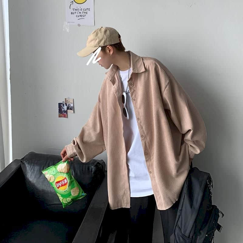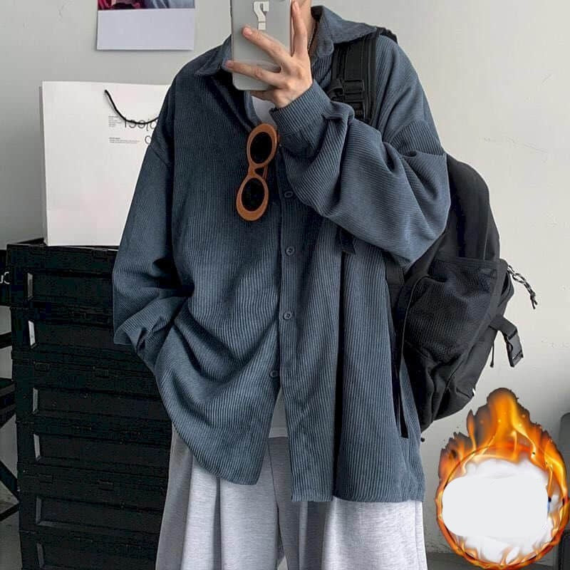 saferido Men's shirt casual Korean ruffian handsome corduroy jacket trend Harajuku all-match Hong Kong style autumn long-sleeved shirt