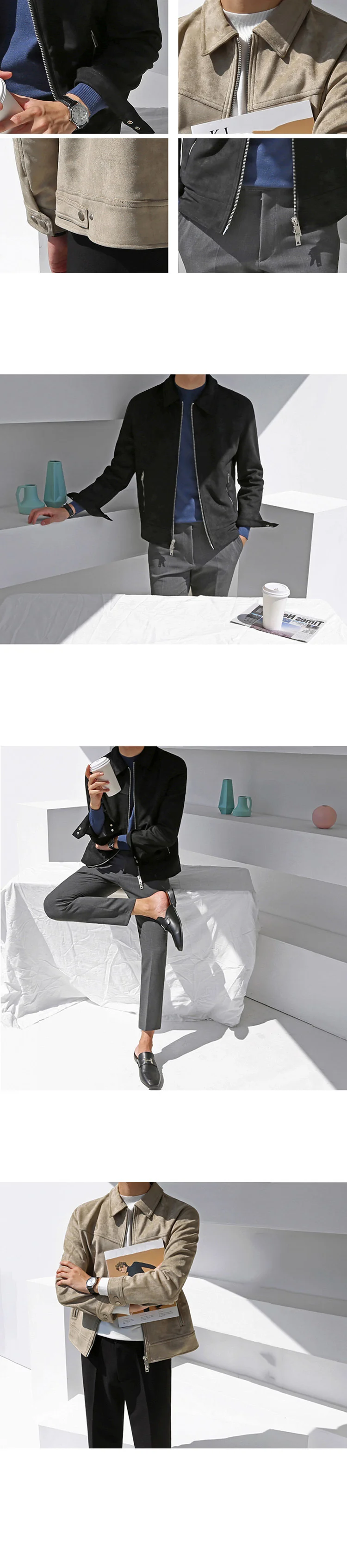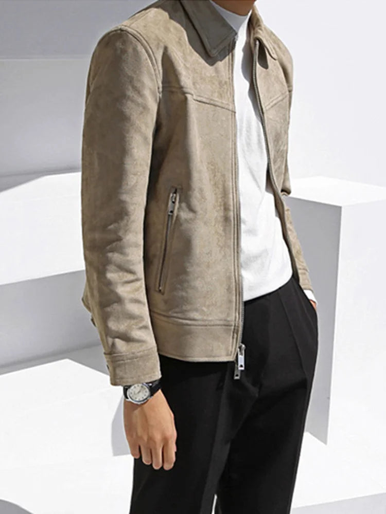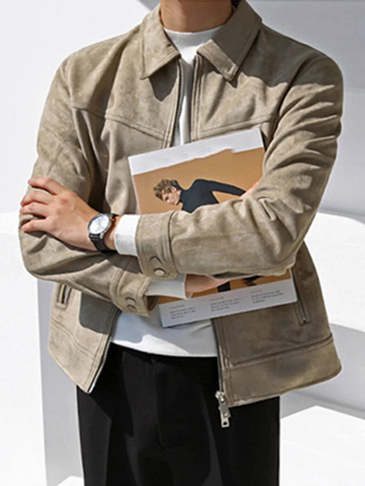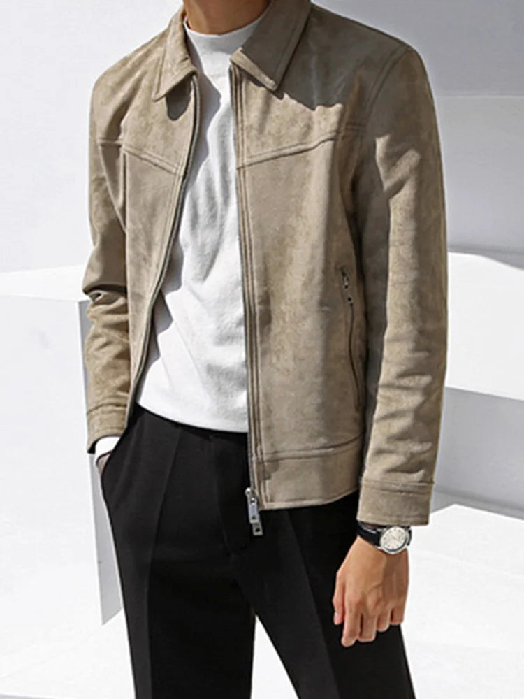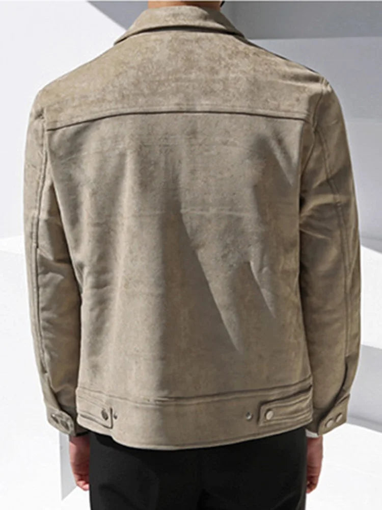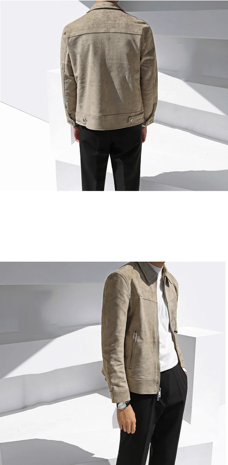 saferido Men's Short Khaki Casual Work Jacket New Korean Style Bright Line Decorated Slim Fashionable Lapel Top