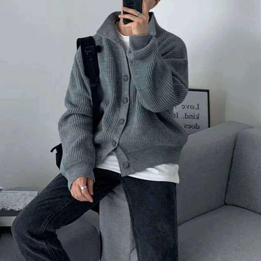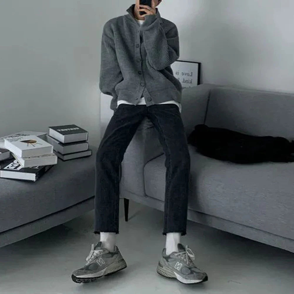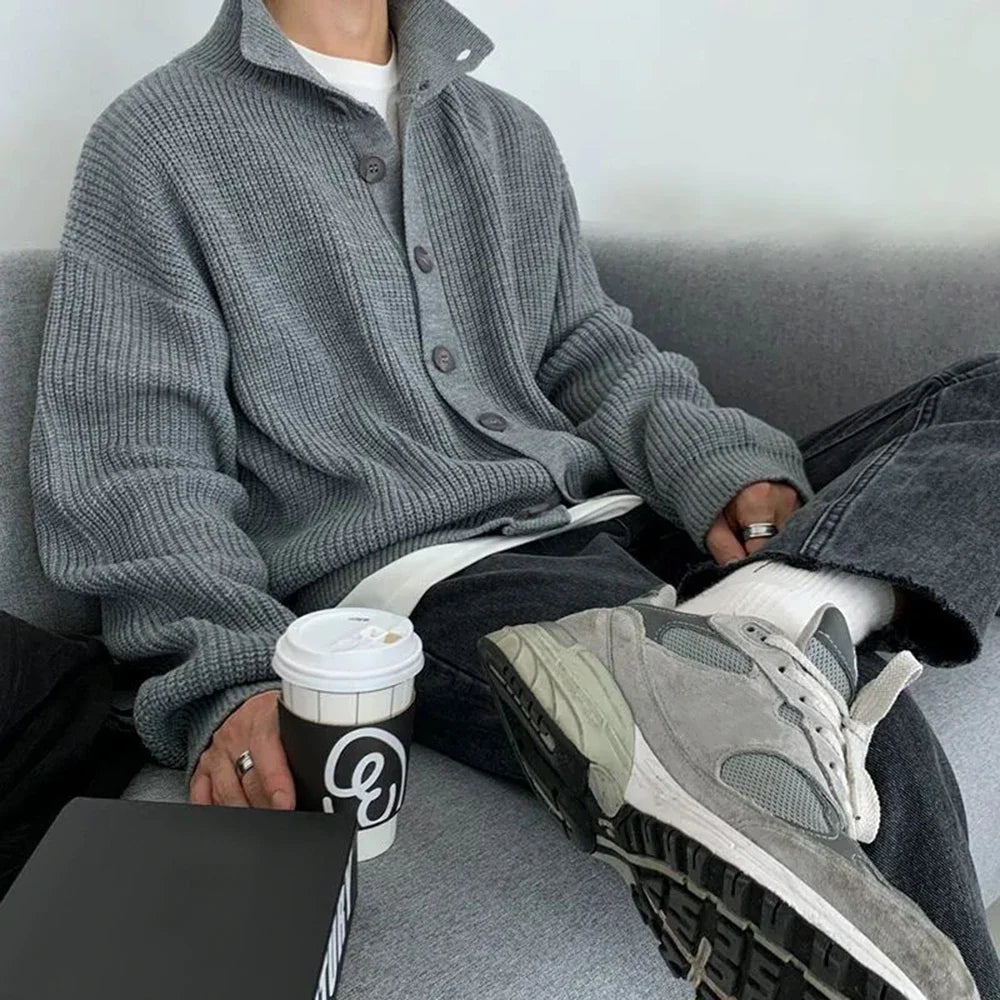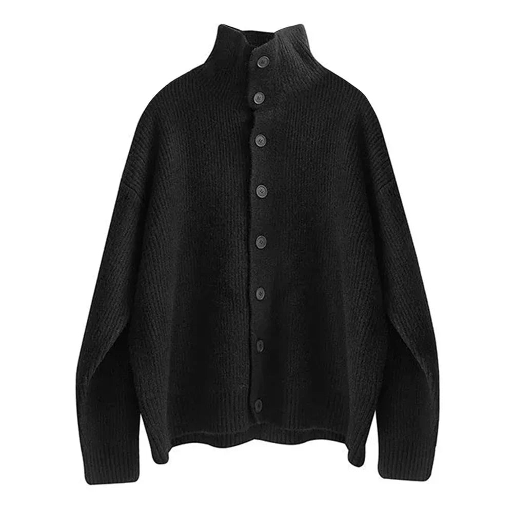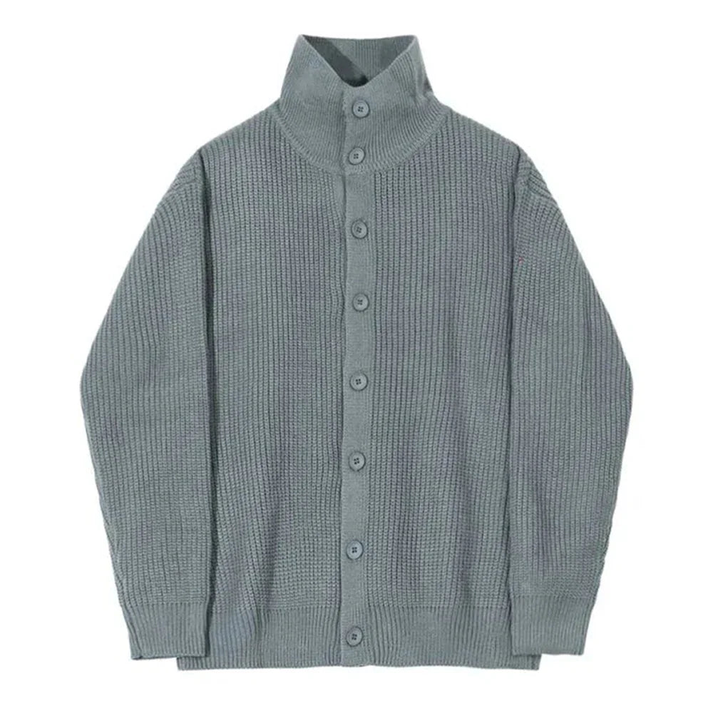 saferido Mens Solid Color Stand Collar Cardigan Sweater Autumn Winter Genderless Korean Loose Trendy Retro Button Sweater Jacket Unisex