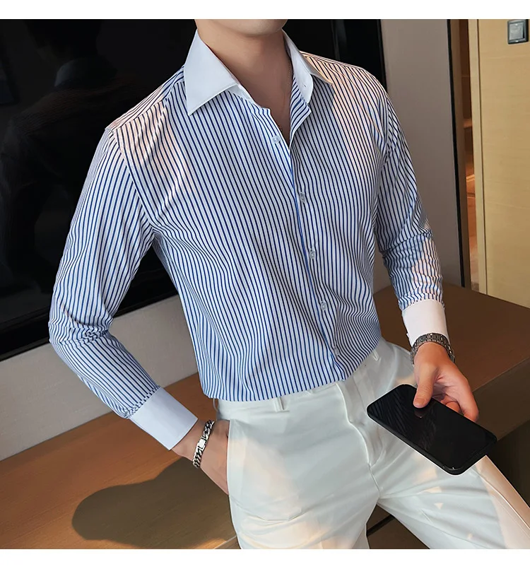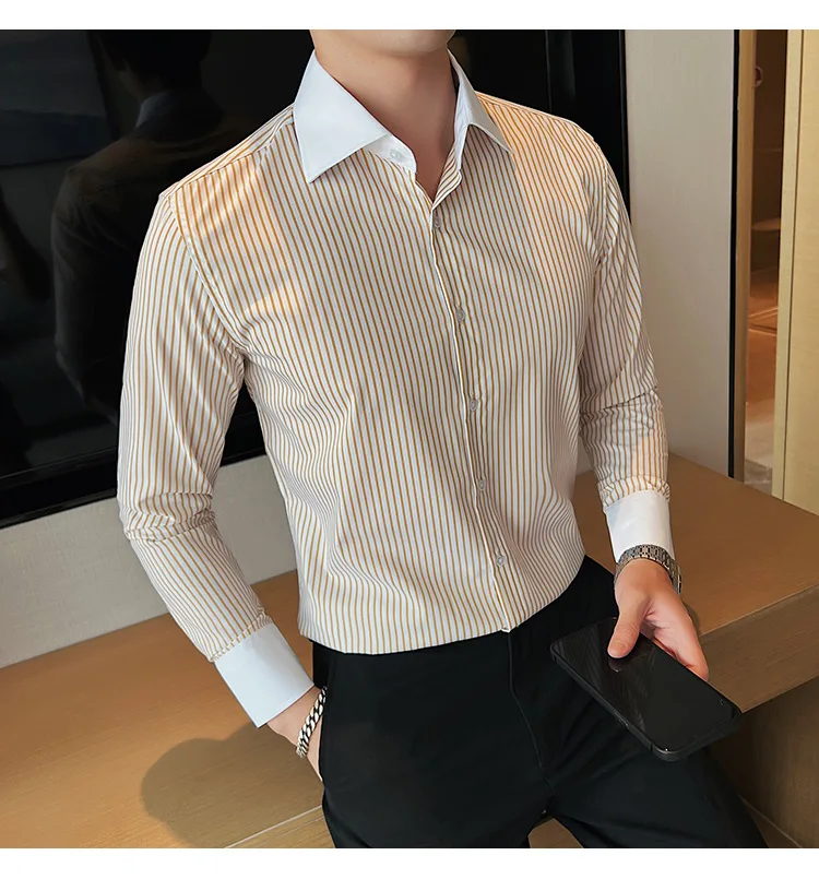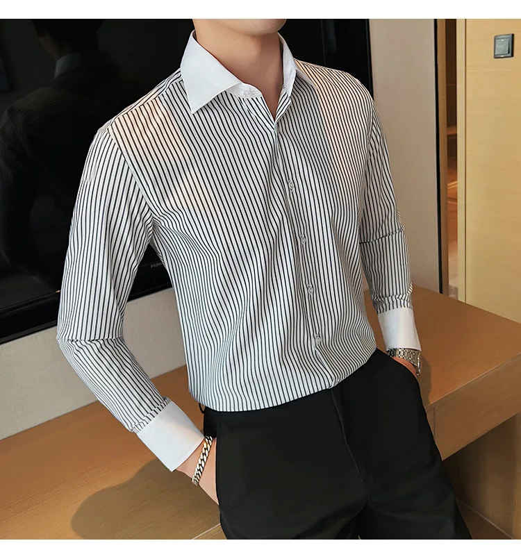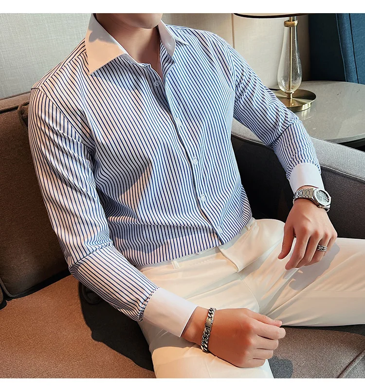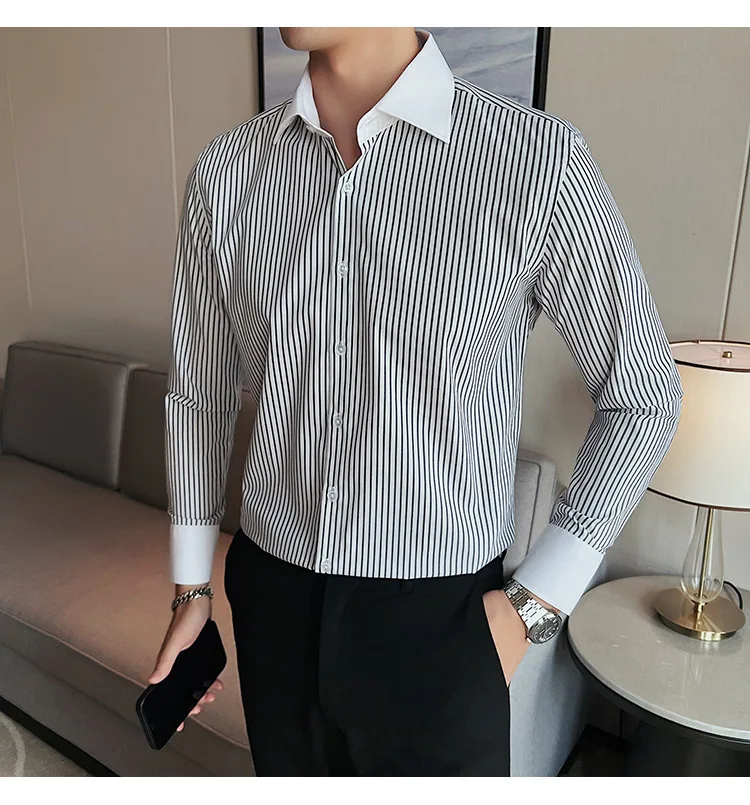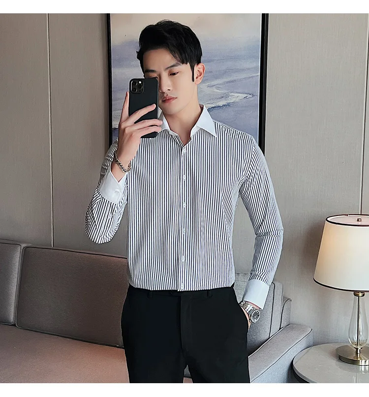 saferido Men's Spring High Quality Business Long Sleeve Shirts/Male Slim Fit Lapel Office Dress Shirts Hombre Casual Chemise de luxe