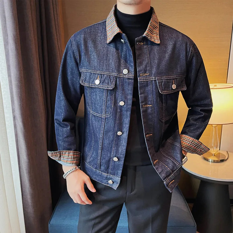 saferido Men's Spring High-quality Casual Denim Jackets/Male Fashion Plaid Business Denim Coat/Man Winter Streetwear Men 3XL-M