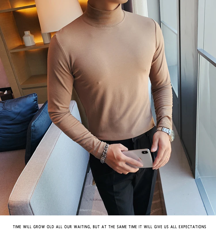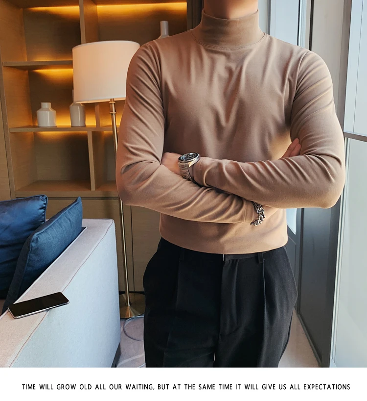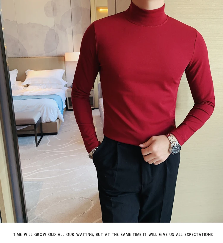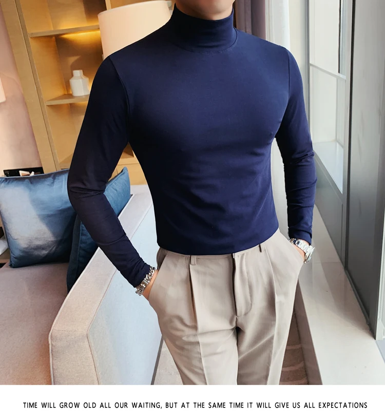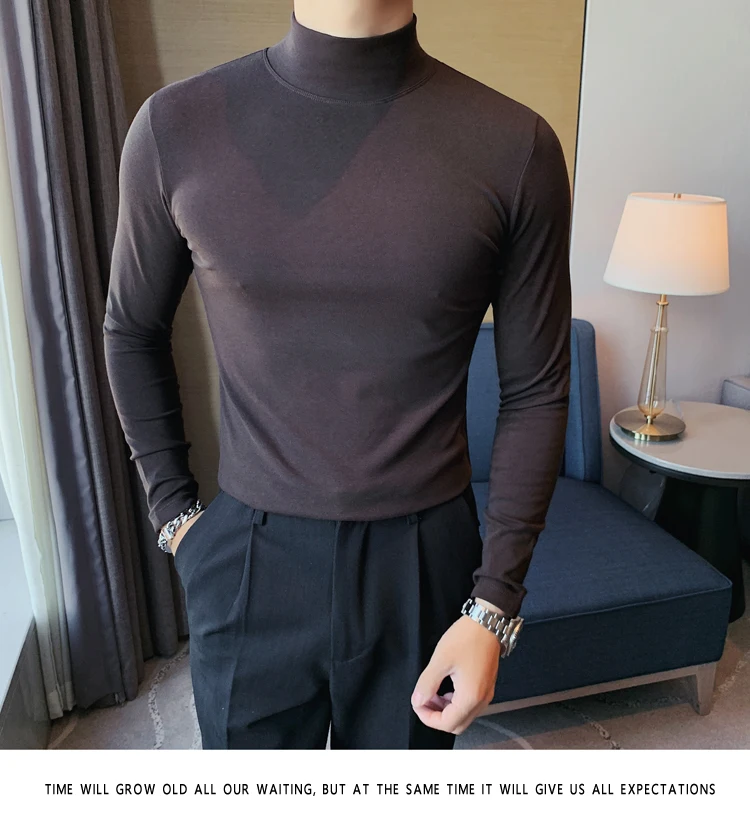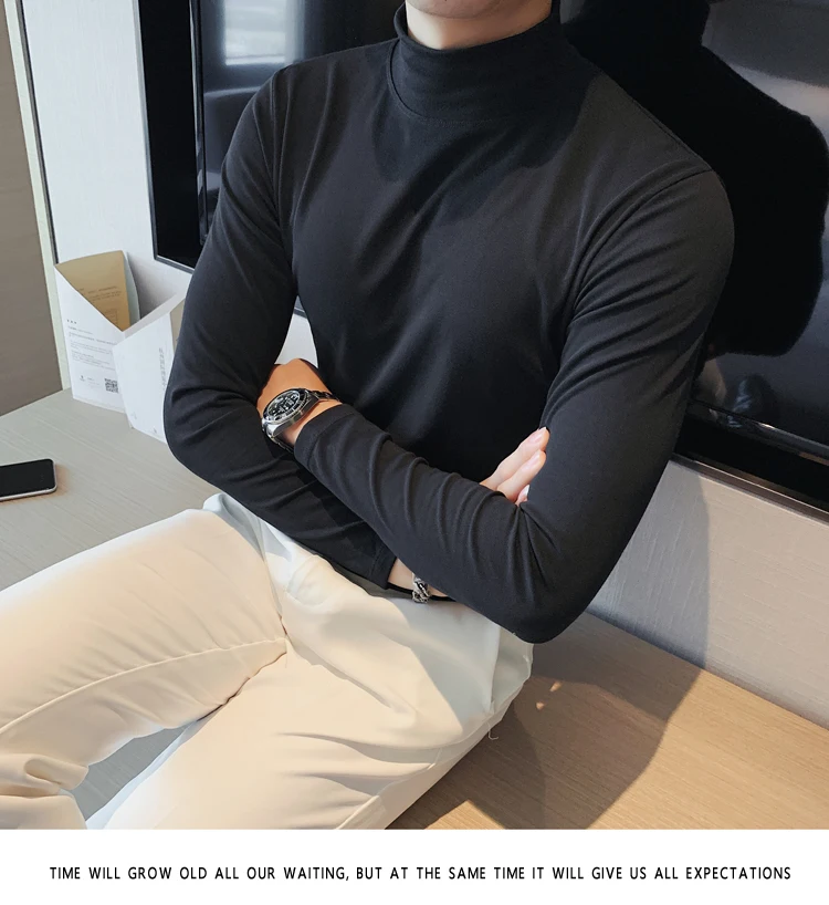 saferido Men's Spring Slim Fit Casual Long Sleeve T-shirt/male High Quality High Collar Tight Bottoming T-shirts Plus Size S-4XL