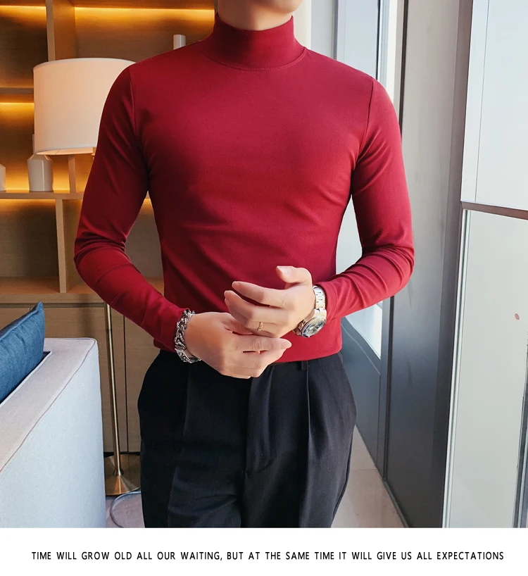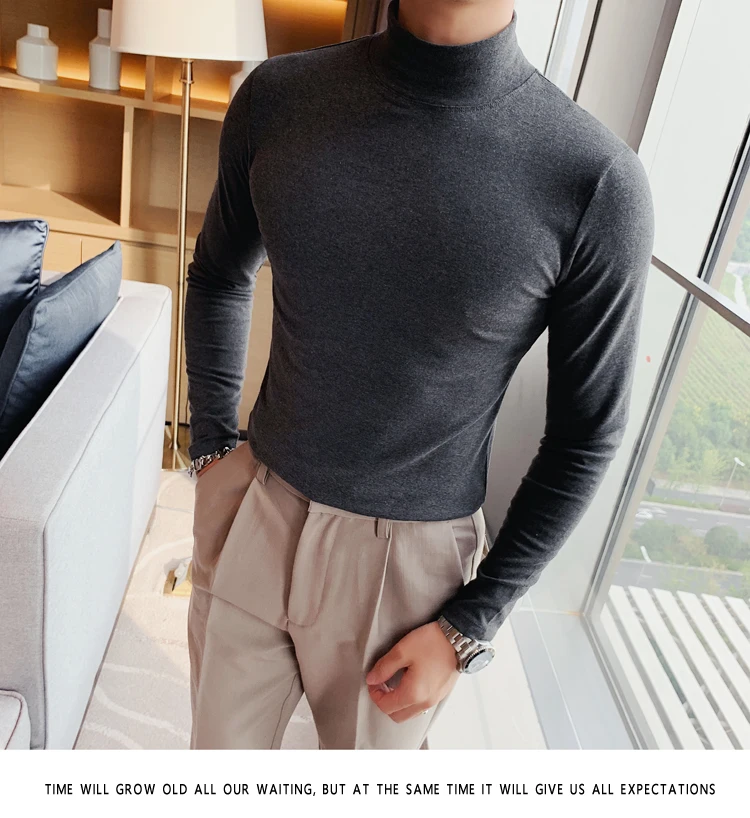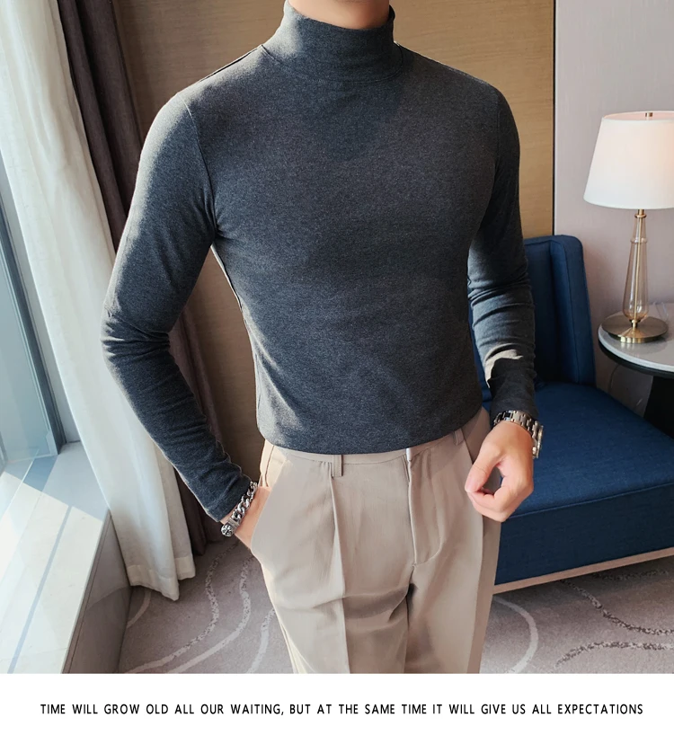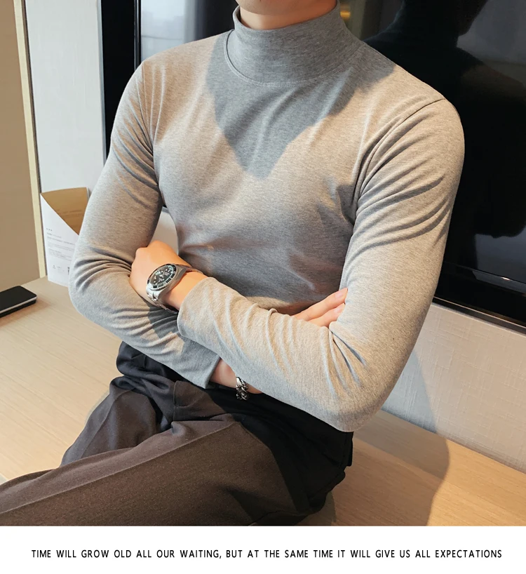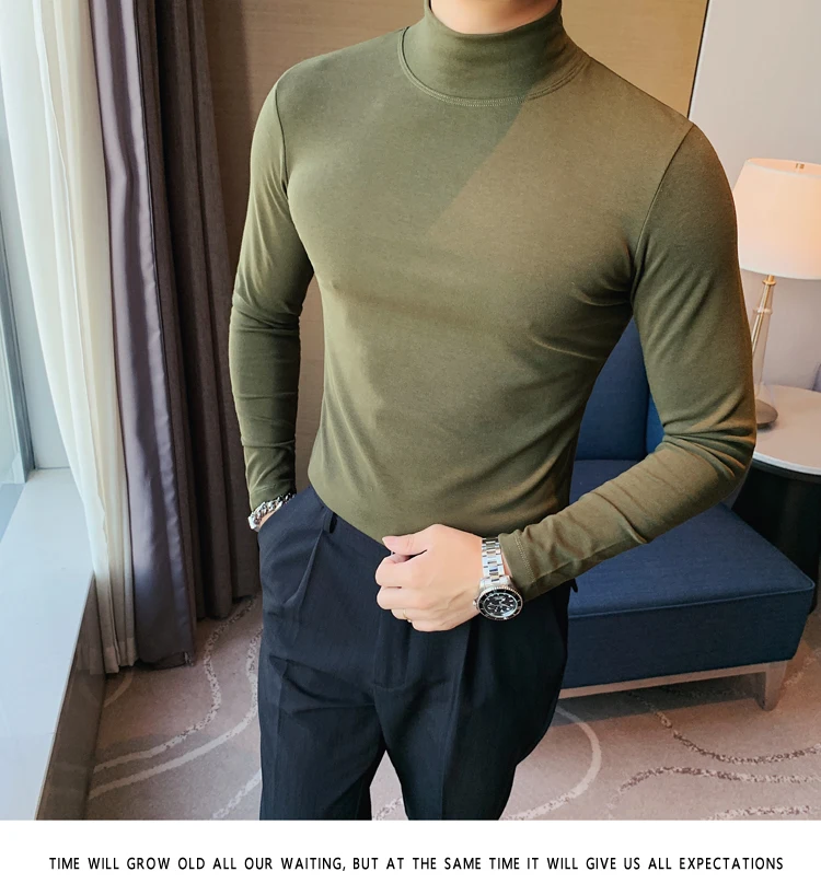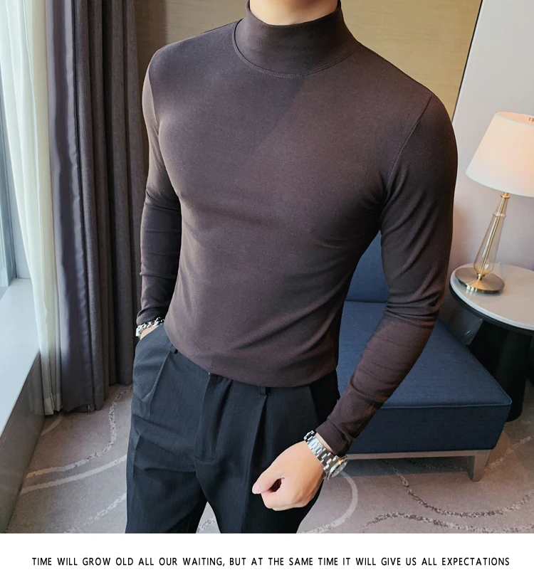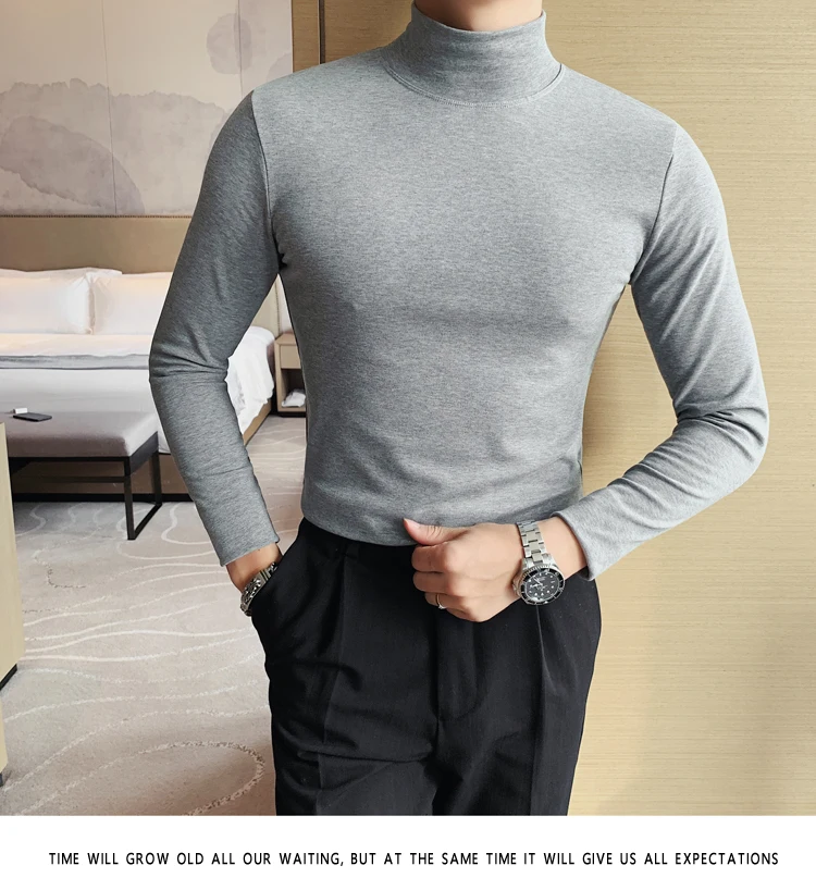 saferido Men's Spring Slim Fit Casual Long Sleeve T-shirt/male High Quality High Collar Tight Bottoming T-shirts Plus Size S-4XL