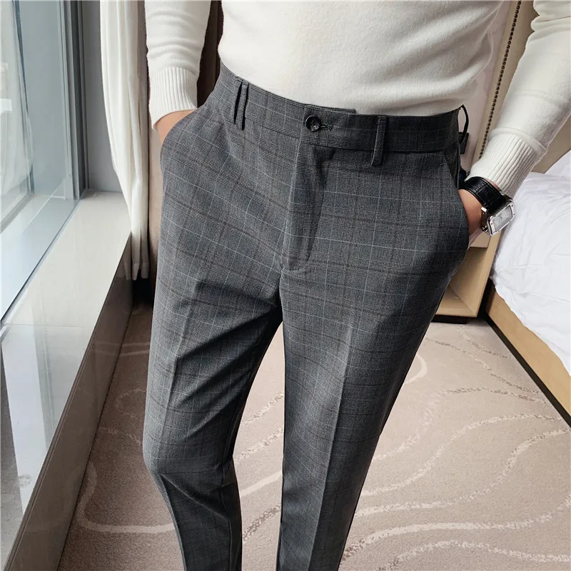 saferido Men's Spring Slim Fit Leisure Pure Cotton Business Suit Pants/Male Plaid Pencil Pantsfashion Trousers 28-38
