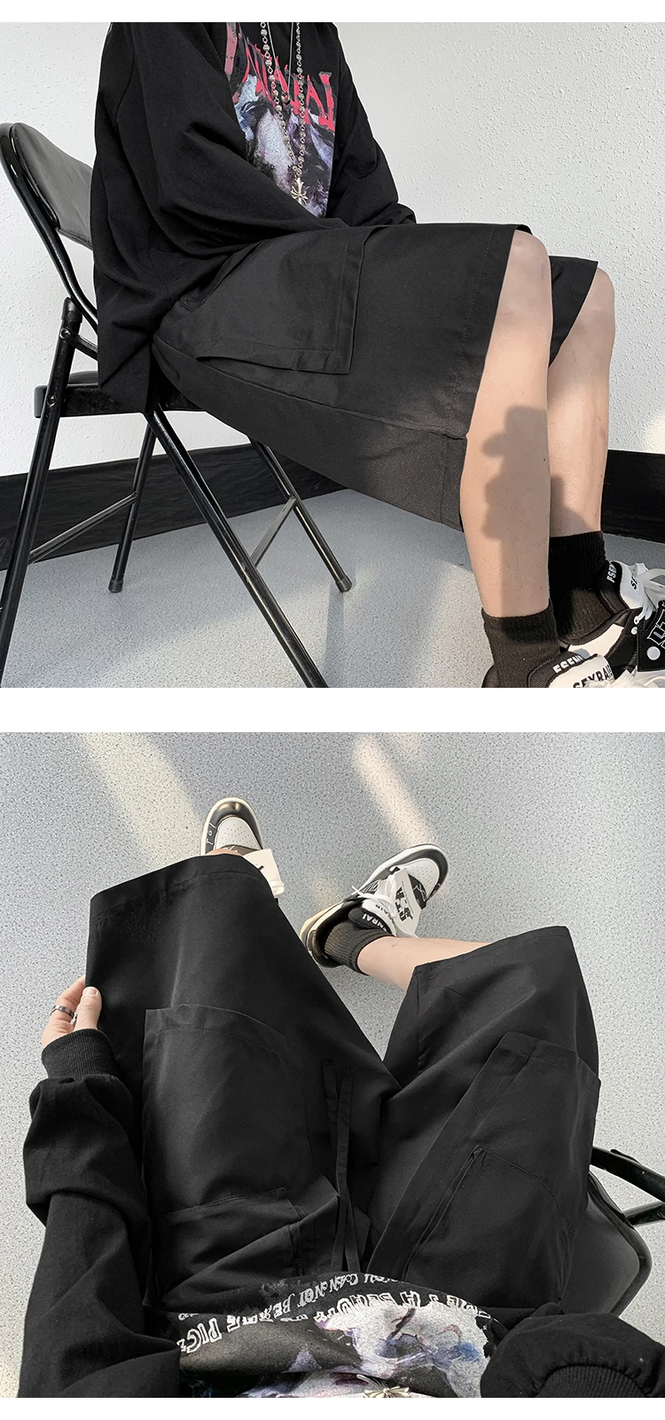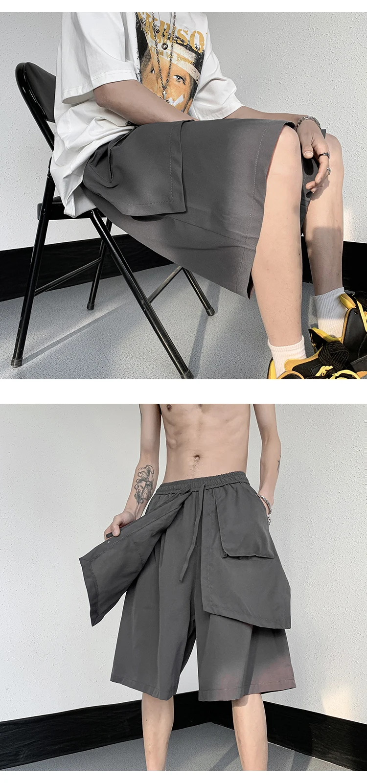 saferido Men's Wide Leg Shorts Loose Fashion Punk Shorts Irregular Harem Solid Jogger Streetwear Elastic Waist Summer Shorts