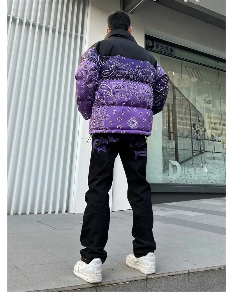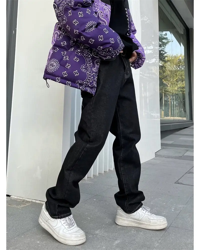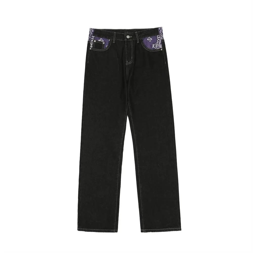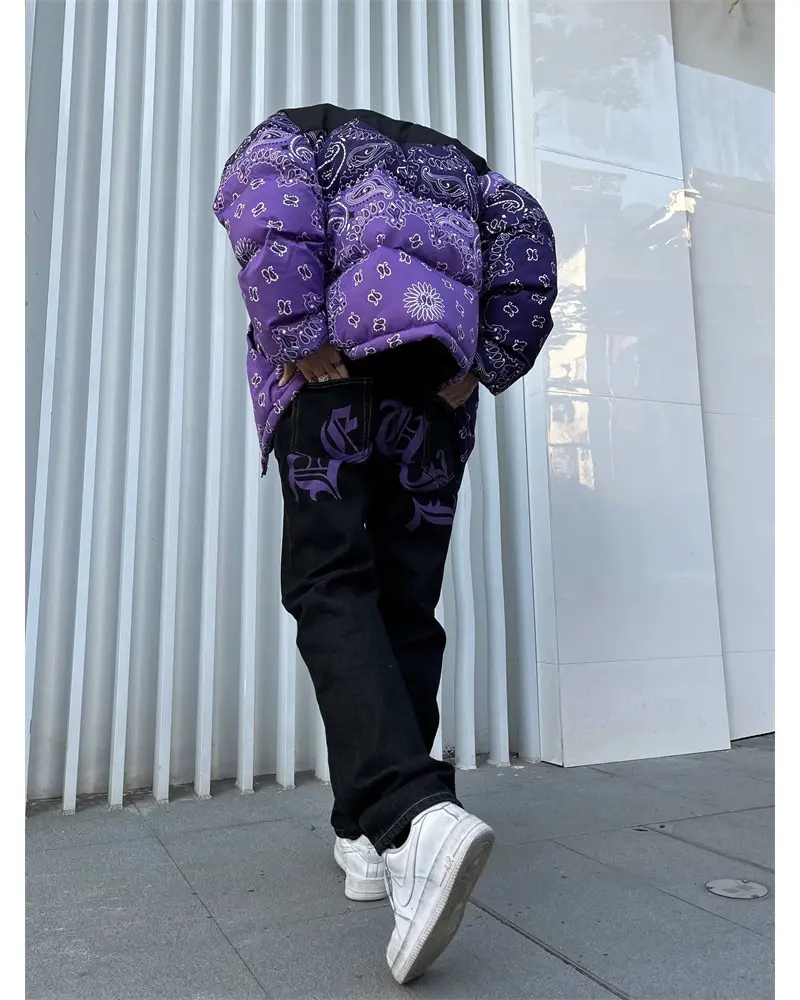 saferido Men's Y2k Jeans Cashew Flowers Purple Streetwear Casual Pants Punk Hip Hop Letter Print Baggy Harajuku Straight Denim Trousers