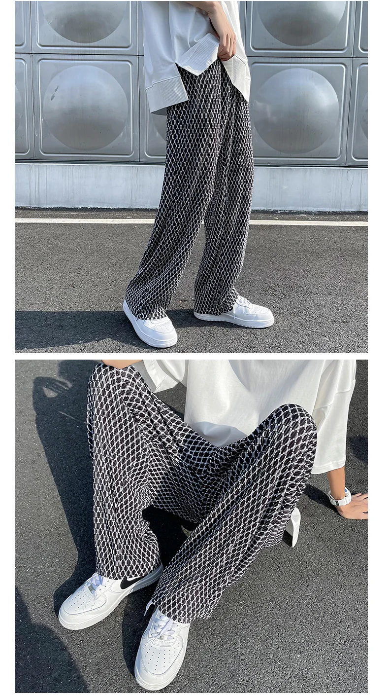 saferido Mopping Casual Pants for Men Four Seasons Fashion Sports Trousers Printed Mesh Loose Pants Straight Wide Leg Sweatpants Oversize