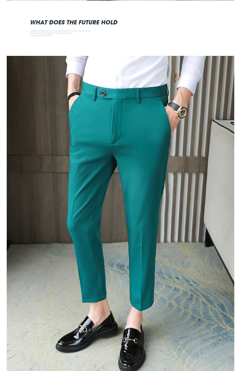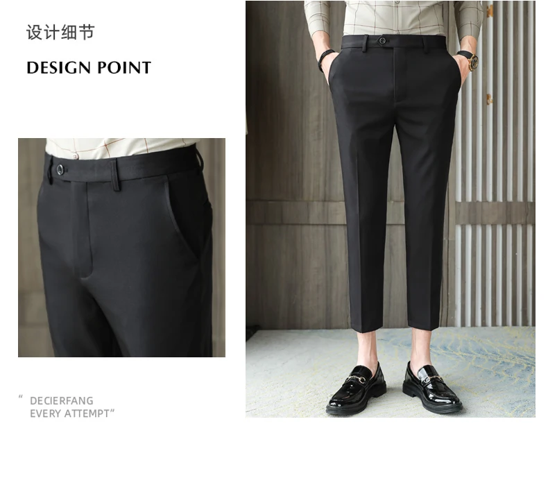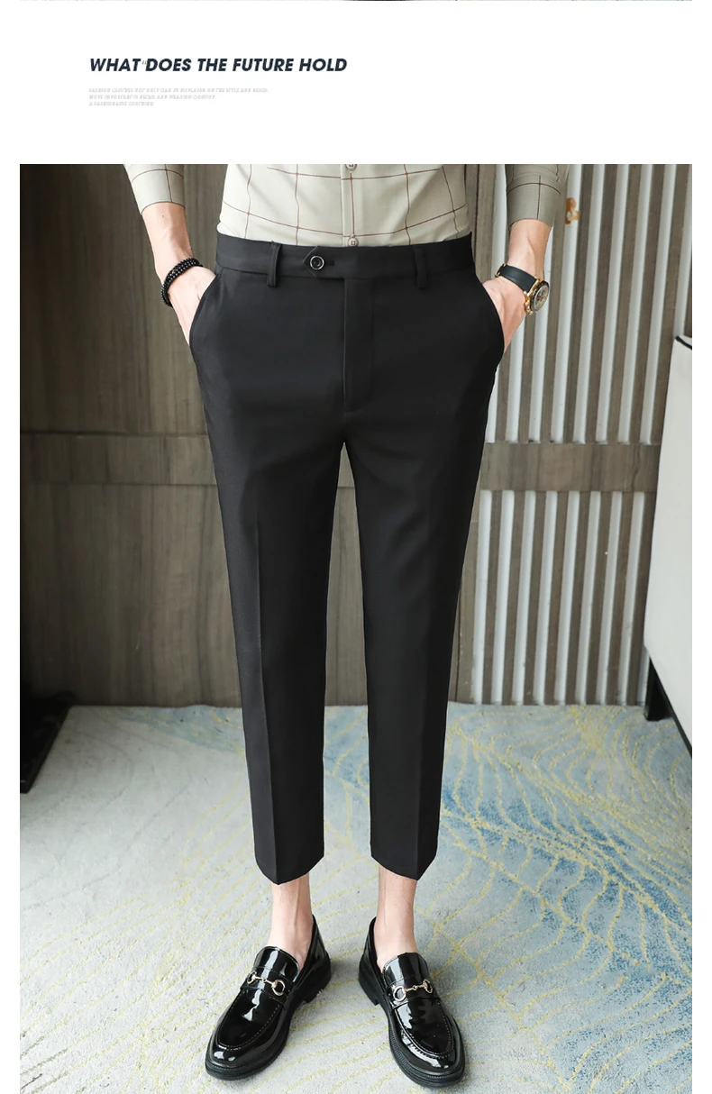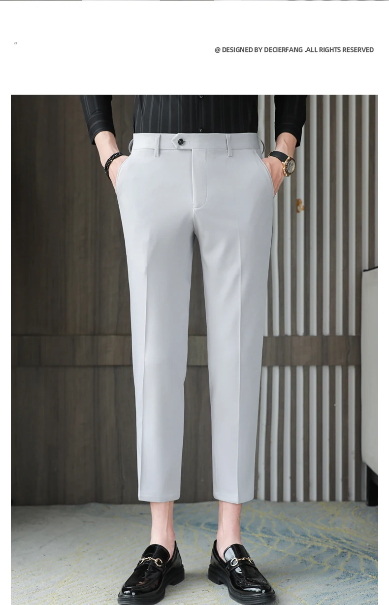 saferido New High-quality British Style Business Casual Slim Suit Trousers Men's Small Feet Nine-point Pants Solid Color All-match 29-36