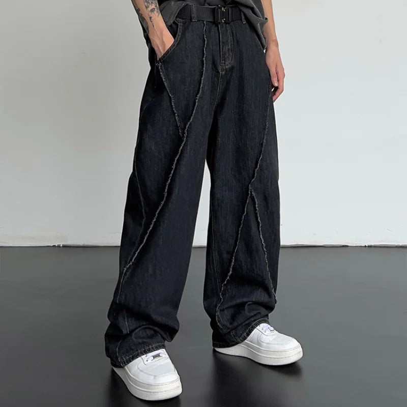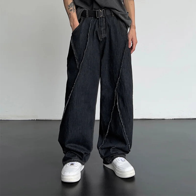 saferido New Personality Street Autumn Hip-hop Jeans Men's Splicing Denim Trousers Men's Oversized Loose Casual Wide-leg Pants 5XL