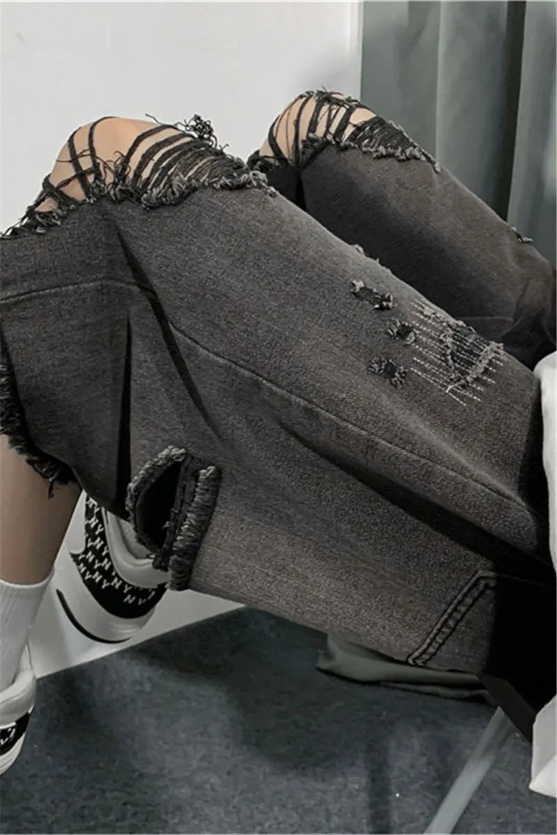 saferido New Style Ripped Denim Shorts Men's Clothing 2024 Summer Five-point Korean Casual Youth Straight Trousers Boutique Clothing