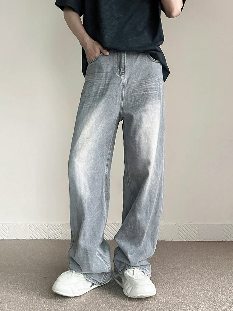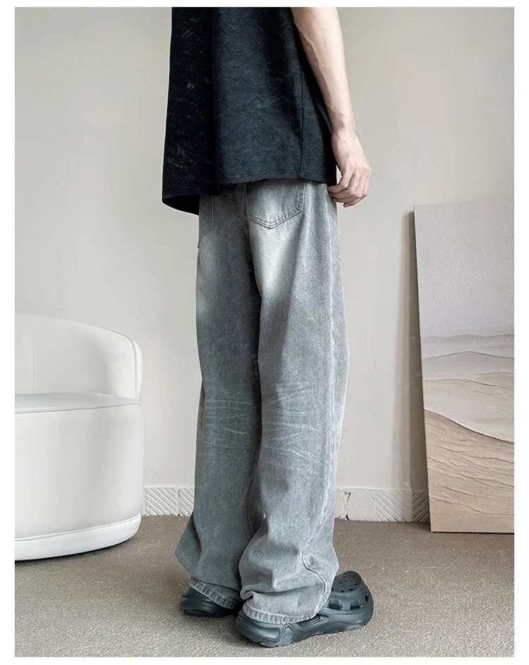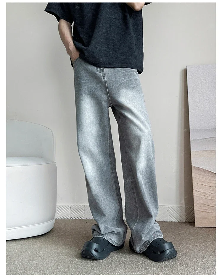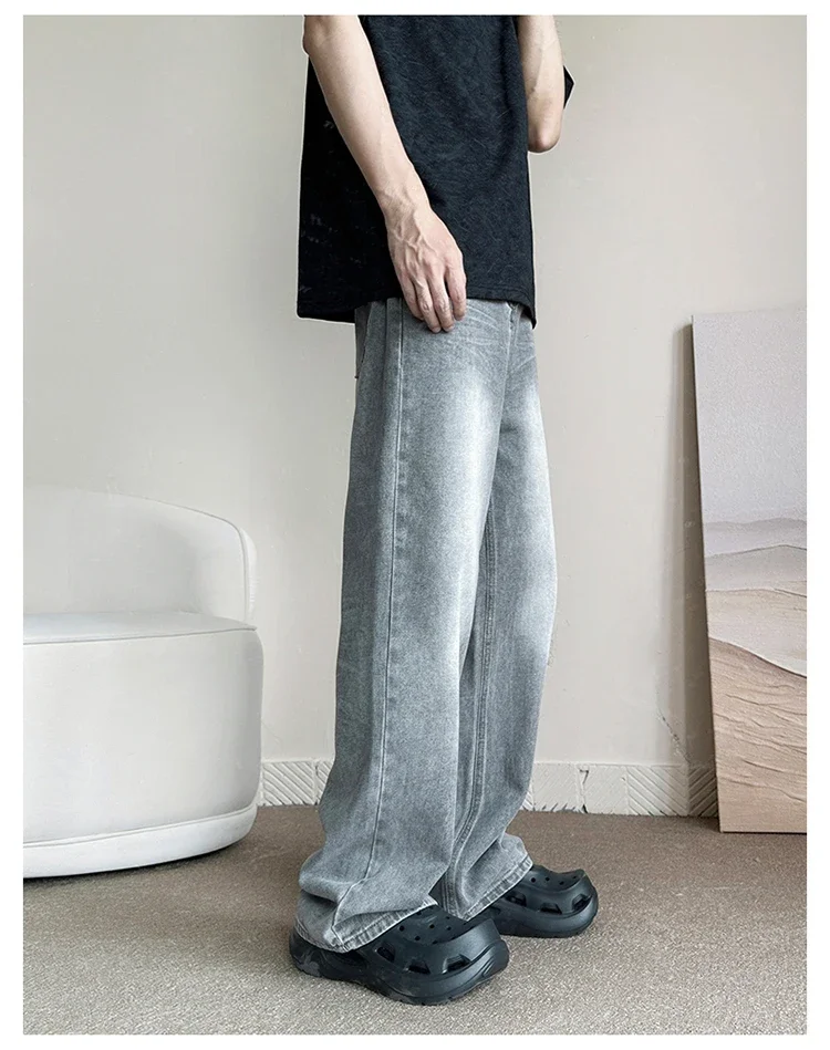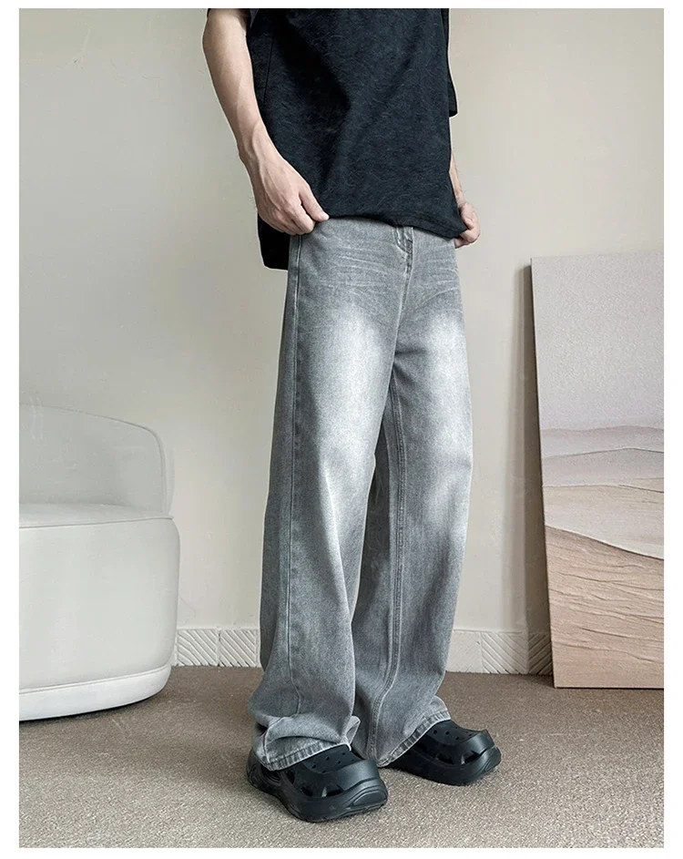 saferido New Vintage Gray Baggy Jeans Men Fashion Harajuku Casual Y2k Pants Straight High Street Male Wide Denim Trousers