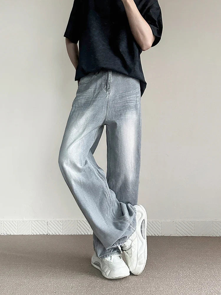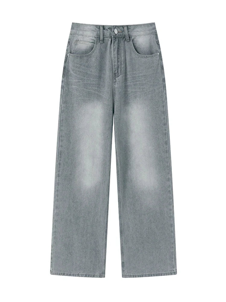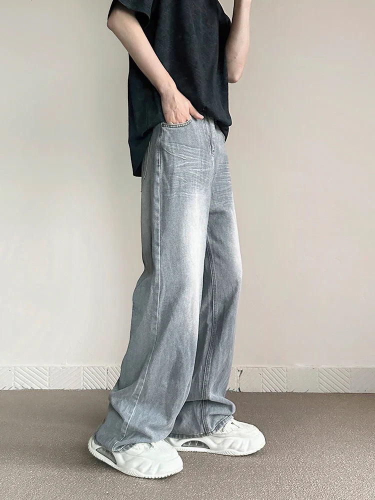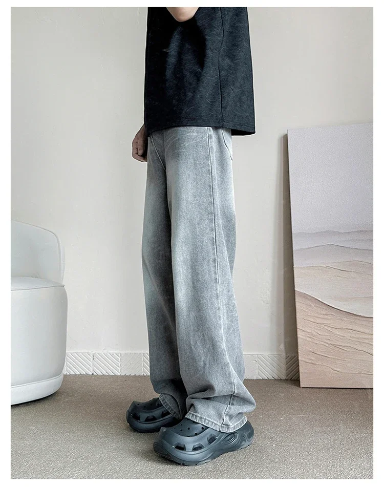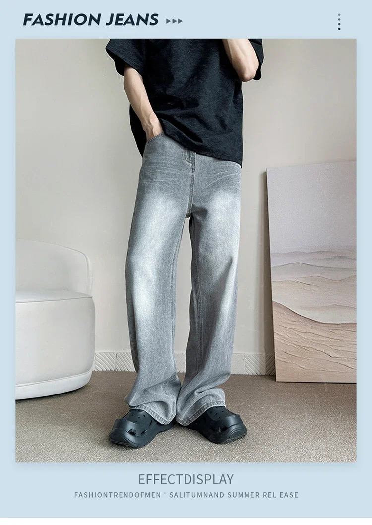 saferido New Vintage Gray Baggy Jeans Men Fashion Harajuku Casual Y2k Pants Straight High Street Male Wide Denim Trousers