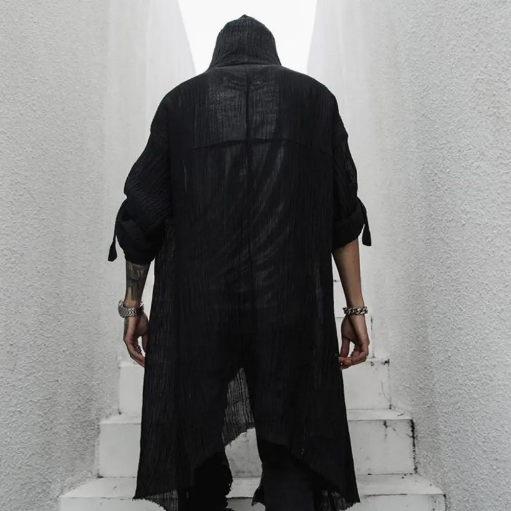 saferido Nightclub DJ Singer Punk Rock Hip Hop Long Shirt Black Hooded Cloak Cardigan Men Pleated Woven Cotton Blouse Gothic Vintage