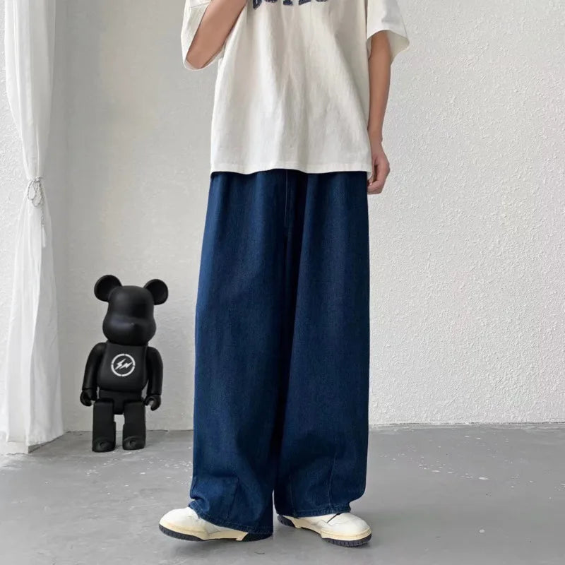 saferido Oversized Jeans Men Fashion Blue Casual Wide Leg Jeans Men Streetwear Loose Hip Hop Straight Denim Pants Mens Trousers M-3XL