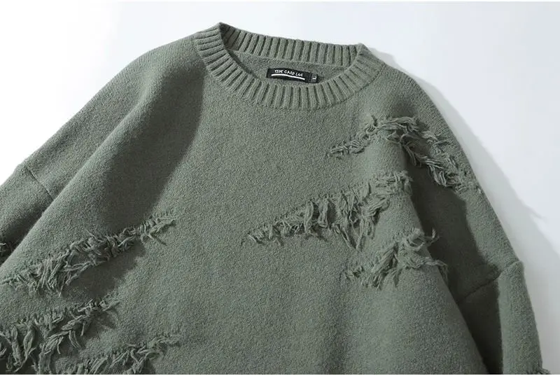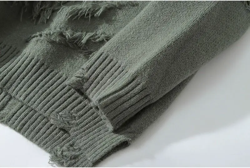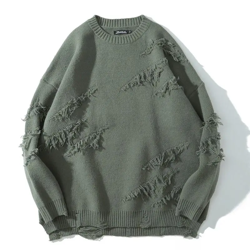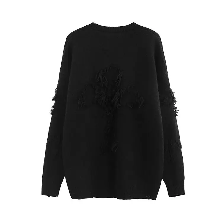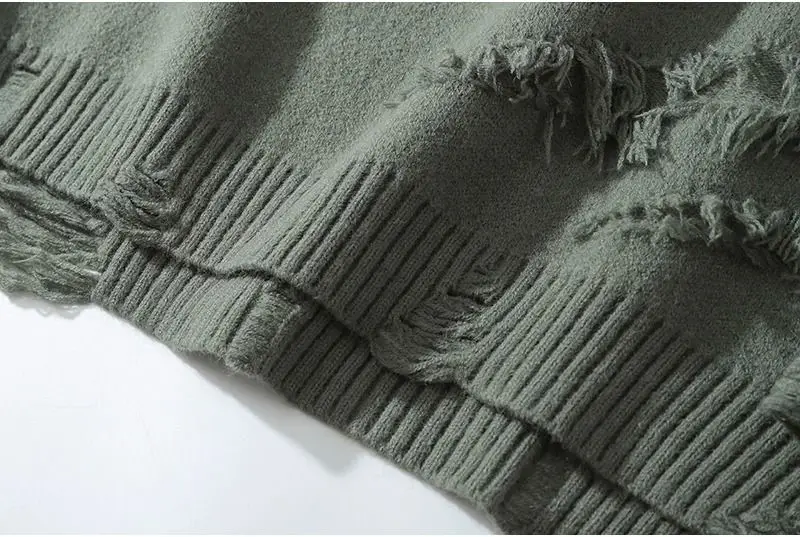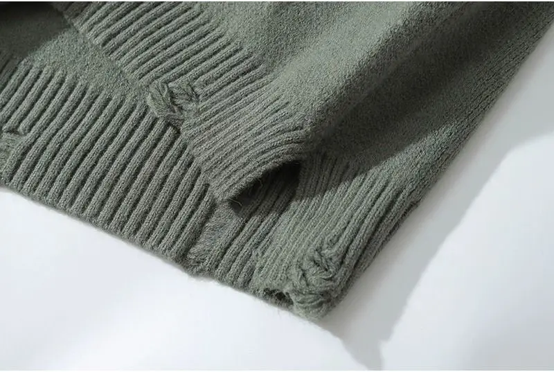 saferido Perforated Versatile Korean Hip Hop Men's and Women's Warm American Casual Japanese Vintage Versatile Sweater Knitwear Couple Sweater