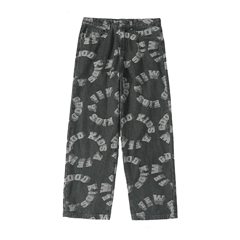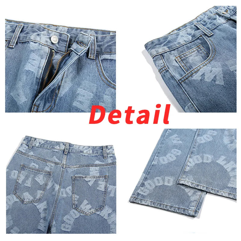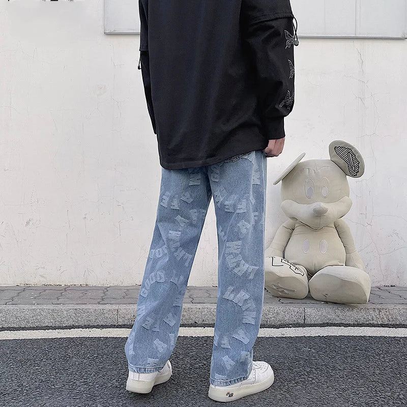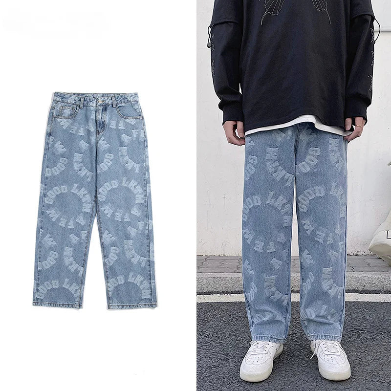 saferido Printing Men's Jeans High Street Fashion Wide Leg Pants Harajuku Streetwear Spring Autumn Denim Trousers Oversizde Male Clothing