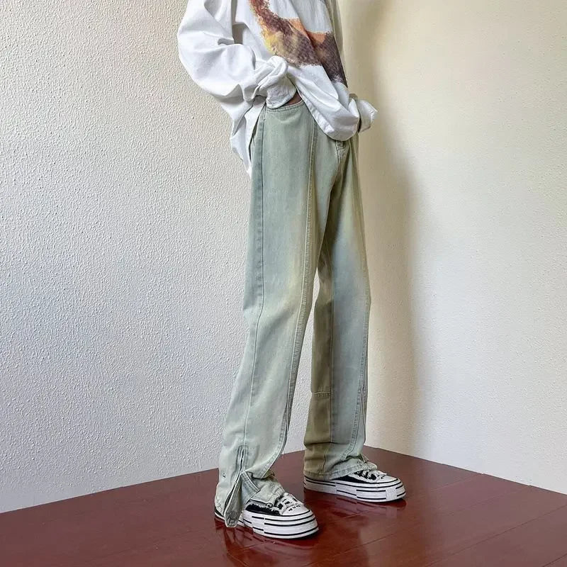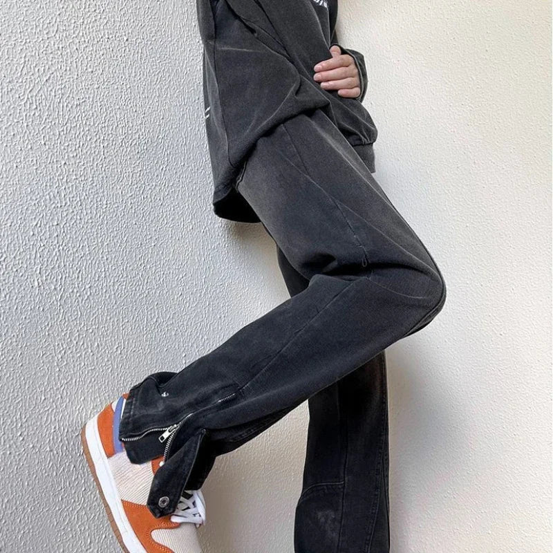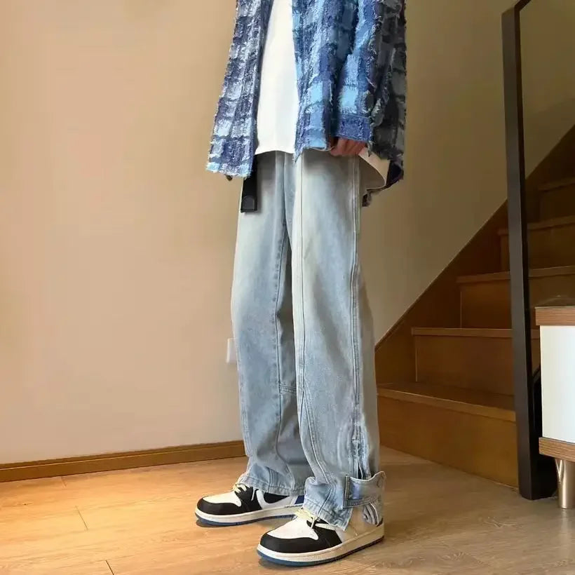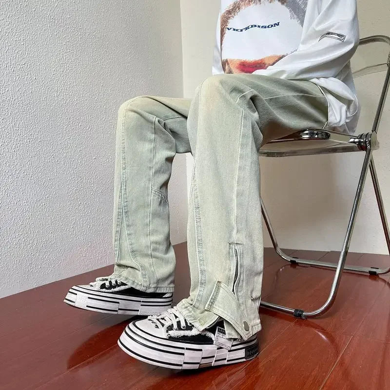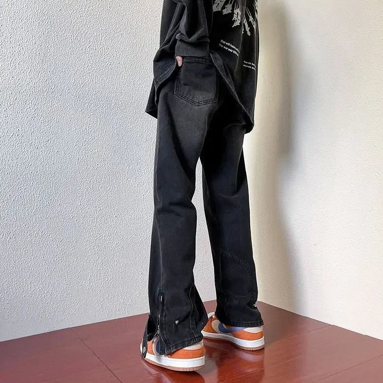 saferido Punk Black Flared Bootcut Jeans for Men Male Cowboy Pants Trousers Soft Oversize Washed Winter Casual 2024 Trend Loose Wide Leg