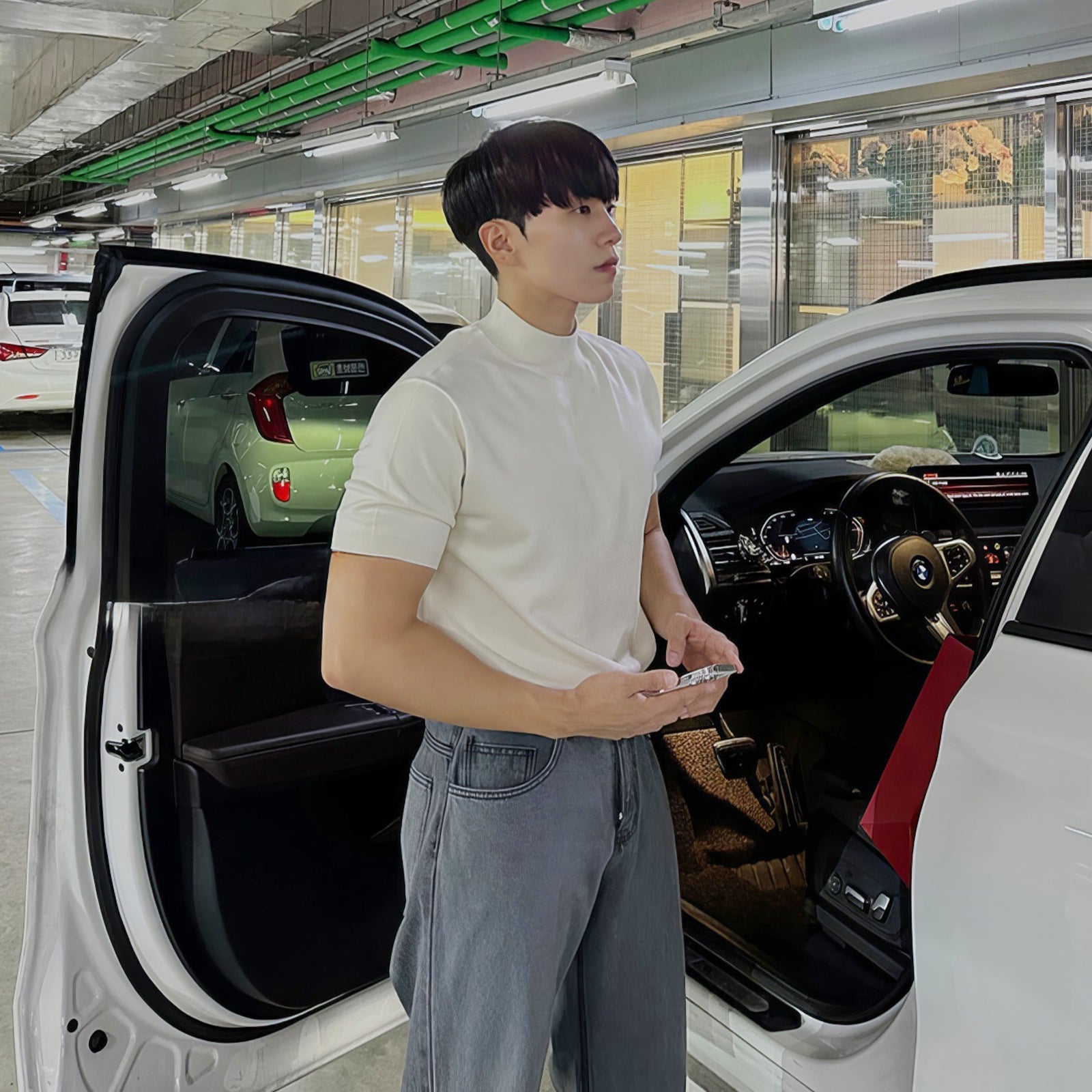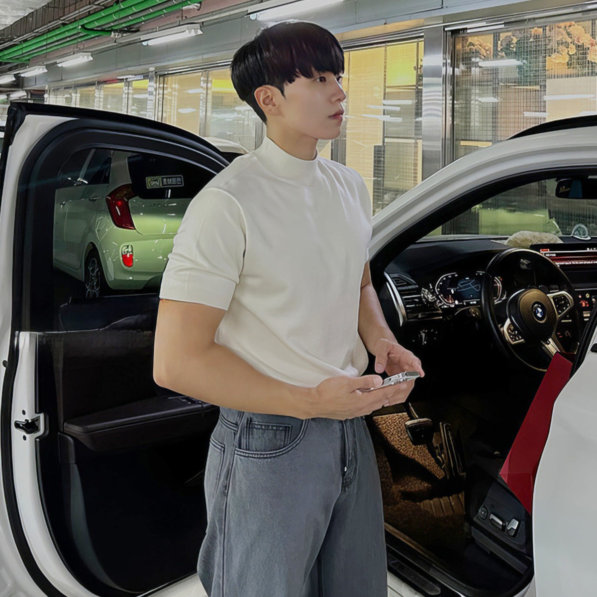 black men fashion urban Black Half Turtleneck Pullover Knitted T-shirt Men's American-Style Men's Short-Sleeved Sweater Trendy Slim Bottoming Half-Sleeved Shirt