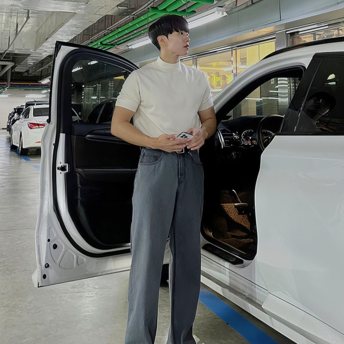 saferido -shop black men fashion urban Black Half Turtleneck Pullover Knitted T-shirt Men's American-Style Men's Short-Sleeved Sweater Trendy Slim Bottoming Half-Sleeved Shirt