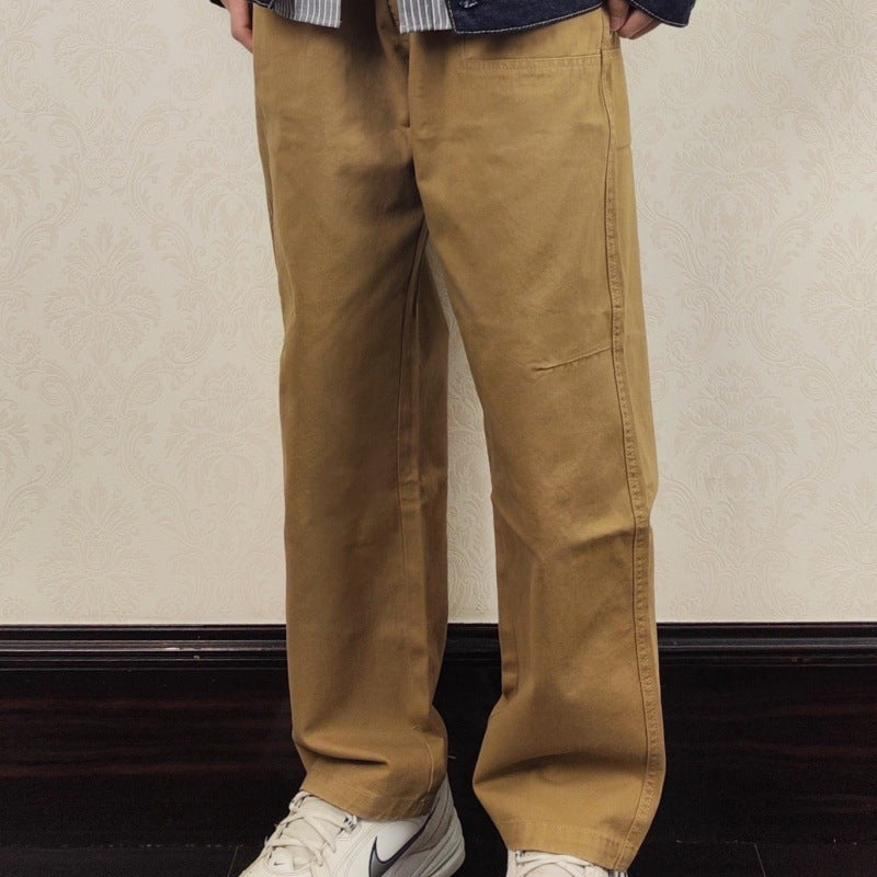 black men fashion urban Spring and Summer New Drawstring Elastic Waist Loose Army Green Casual Straight Trousers Overalls Men