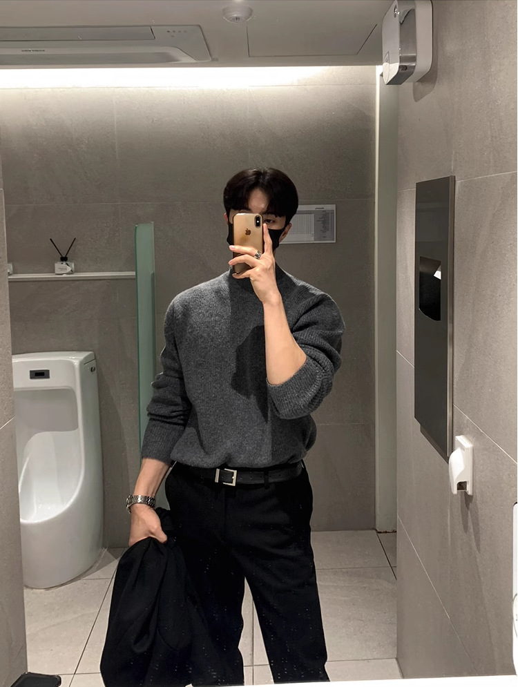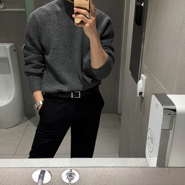 classy outfits men Men's Autumn and Winter Half Turtleneck Sweater Men's Korean-Style Trendy Solid Color Sweater Mid Collar Bottoming Shirt Warm Inner Wear