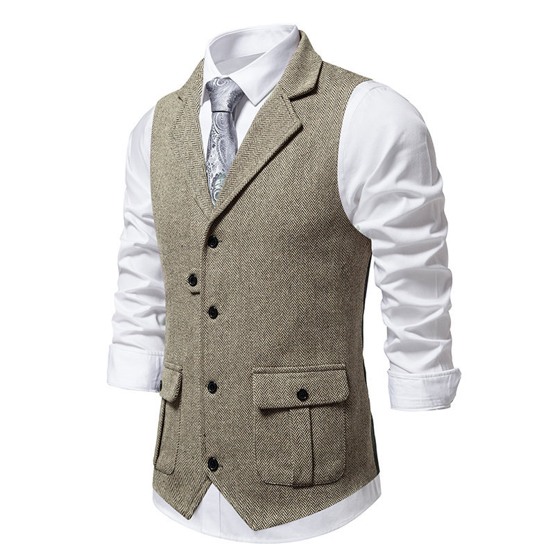 saferido -shop men’s fashion Men's Men's Herringbone Tweed Suit Vest Retro Lapel Vest Men's Vest