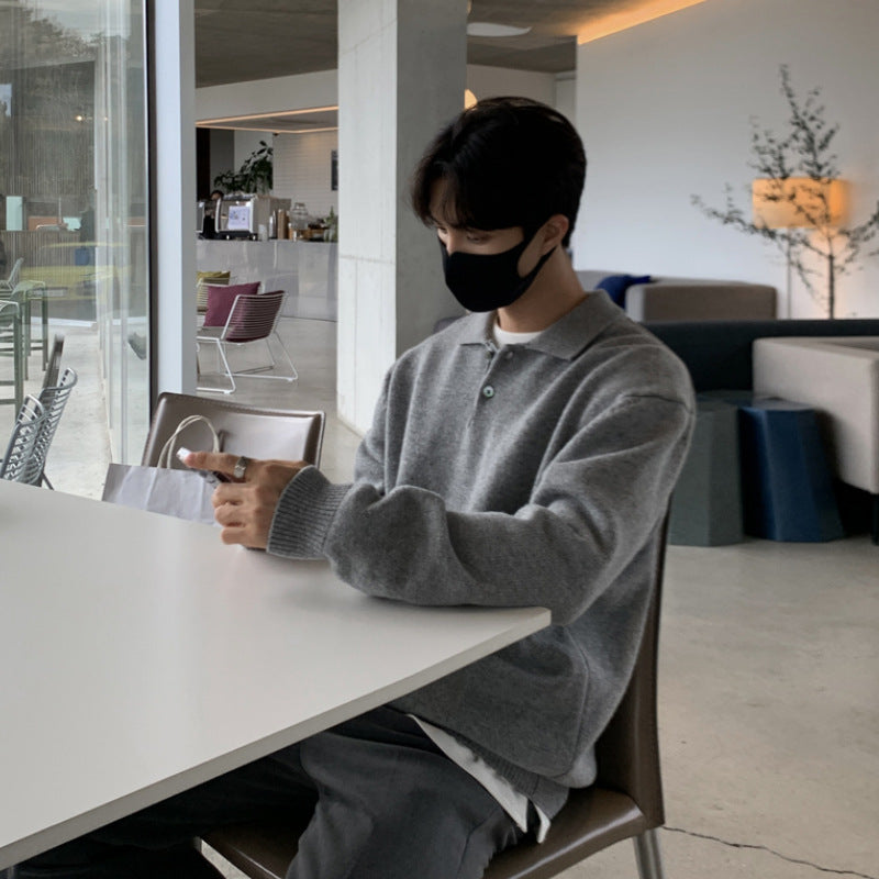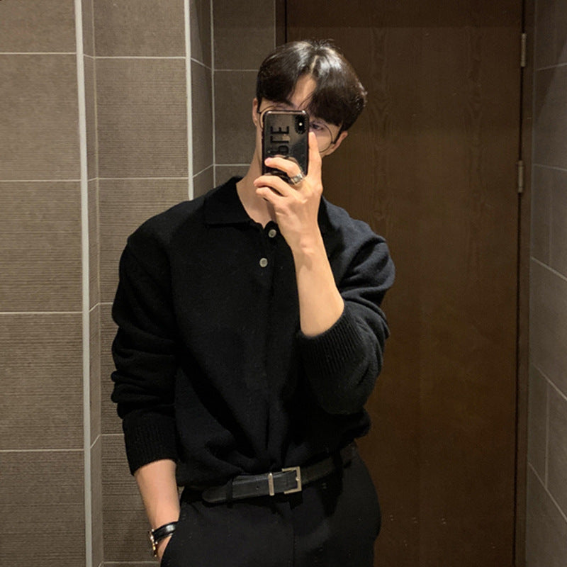 saferido -shop mens fall fashion Asclo Trendy New Dongdaemun Men's Lapel Sweater Men's Designer Polo Collar Skin-Friendly Loose Autumn