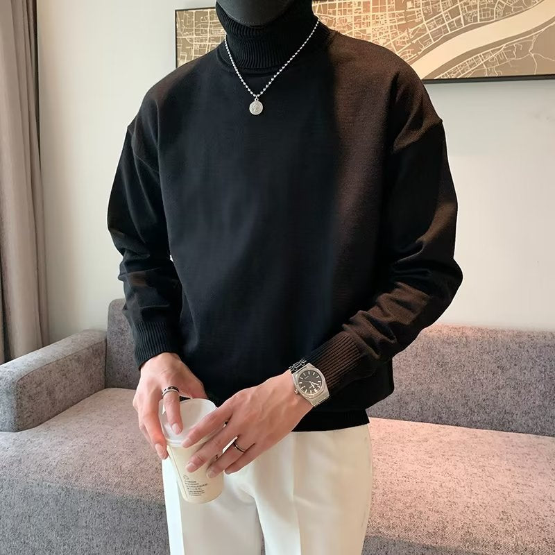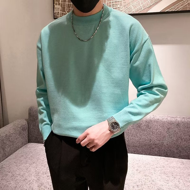 saferido -shop mens fashion Spring and Autumn New Pure Color Sweater Men's Fresh round Neck Basic Long Sleeve Youth Casual Drop Shoulder Bottoming Shirt