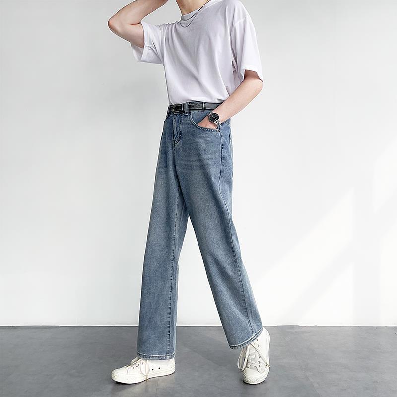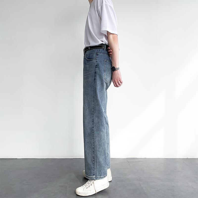mens outfit inspiration Jinbukang Drop Jeans Men's Retro Distressed Hong Kong Style Loose Straight Pants All-Match Draping