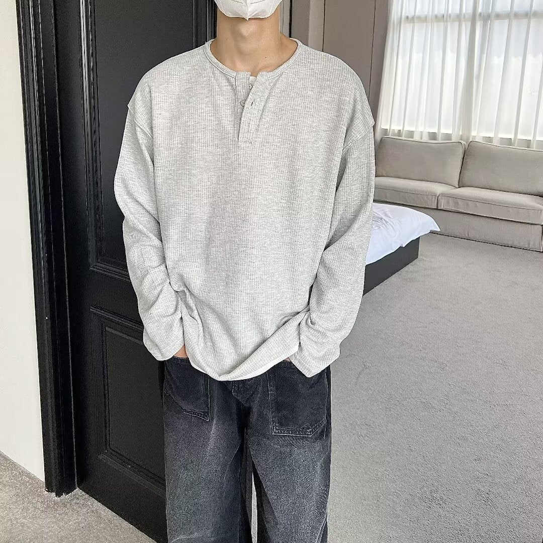 mens outfit inspiration Japanese Retro Henry Collar Fake Two-Piece Long-Sleeved T-shirt Men's Autumn Casual Sweater Men's Autumn Bottoming Shirt
