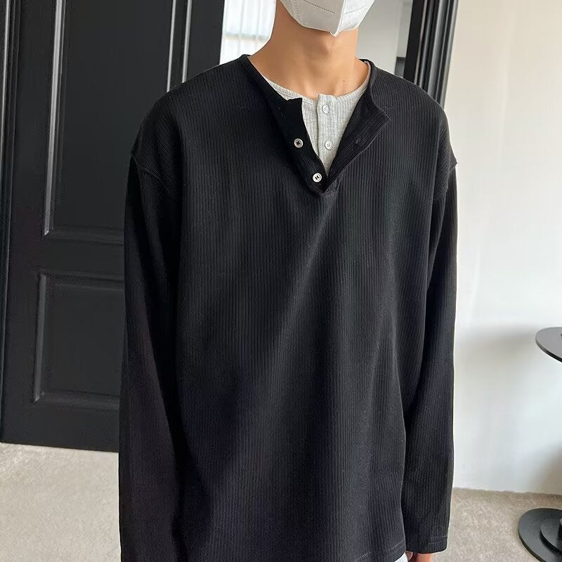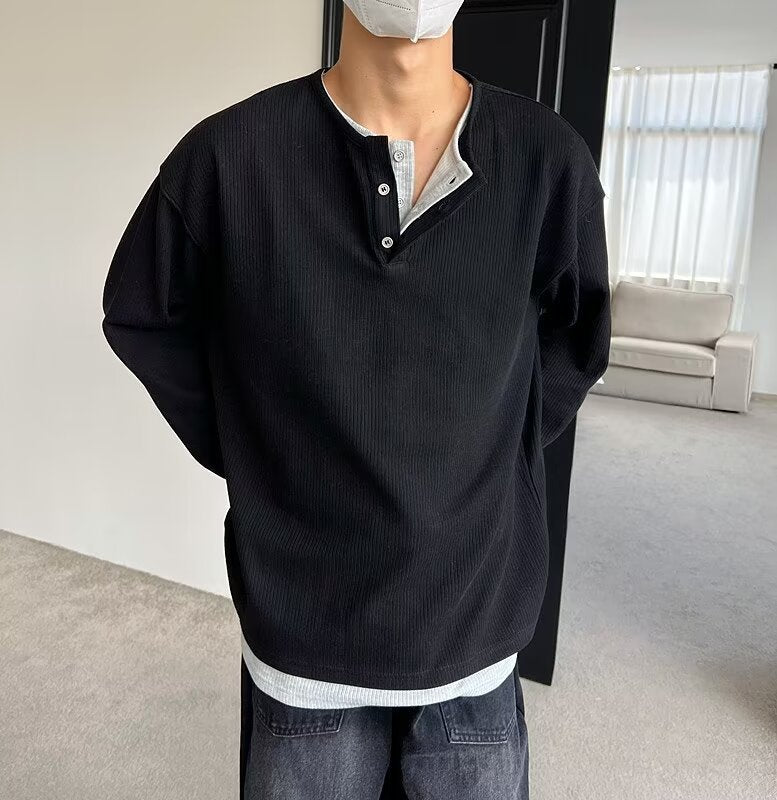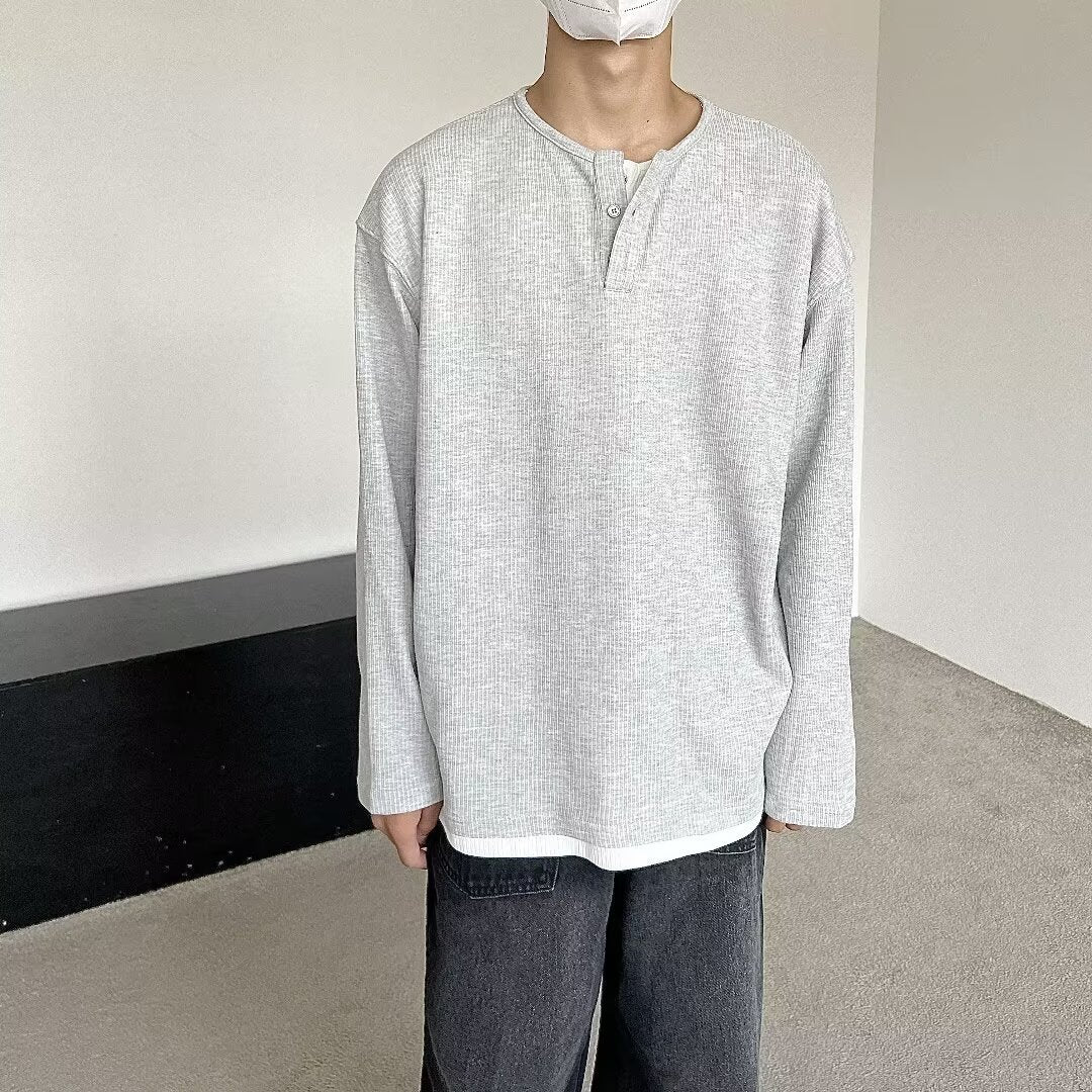 saferido -shop mens outfit inspiration Japanese Retro Henry Collar Fake Two-Piece Long-Sleeved T-shirt Men's Autumn Casual Sweater Men's Autumn Bottoming Shirt