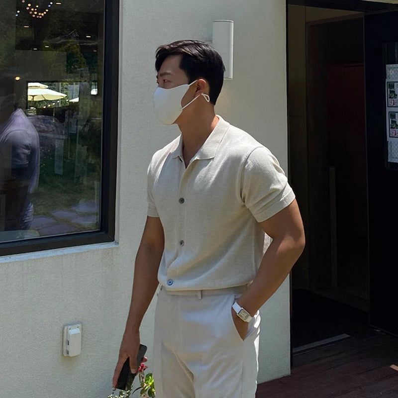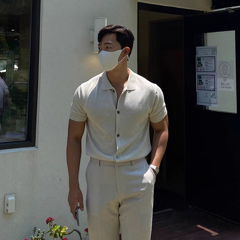 saferido -shop old money outfits men Ice Silk Knitted Short-Sleeved Men's Summer Ruffle Handsome Lapel T-shirt New Men's Summer Top Polo Shirt