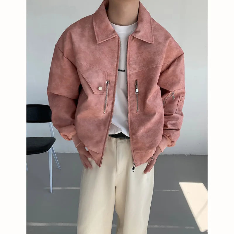 saferido Short Leather Jacket Men Oversized Fashion Casual Motorcycle Jackets Men Streetwear Hip-hop Loose Bomber Jacket Mens Outwear